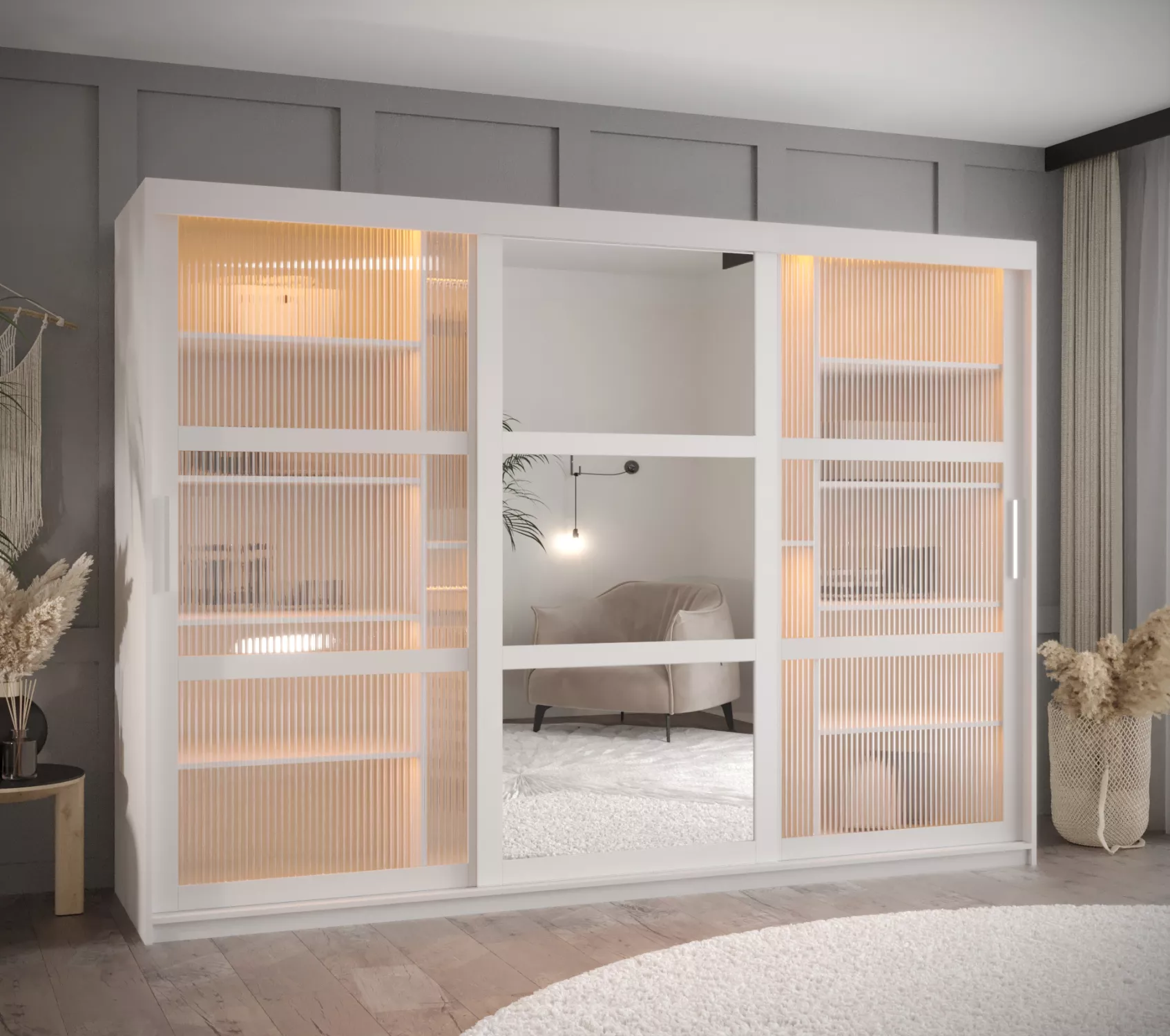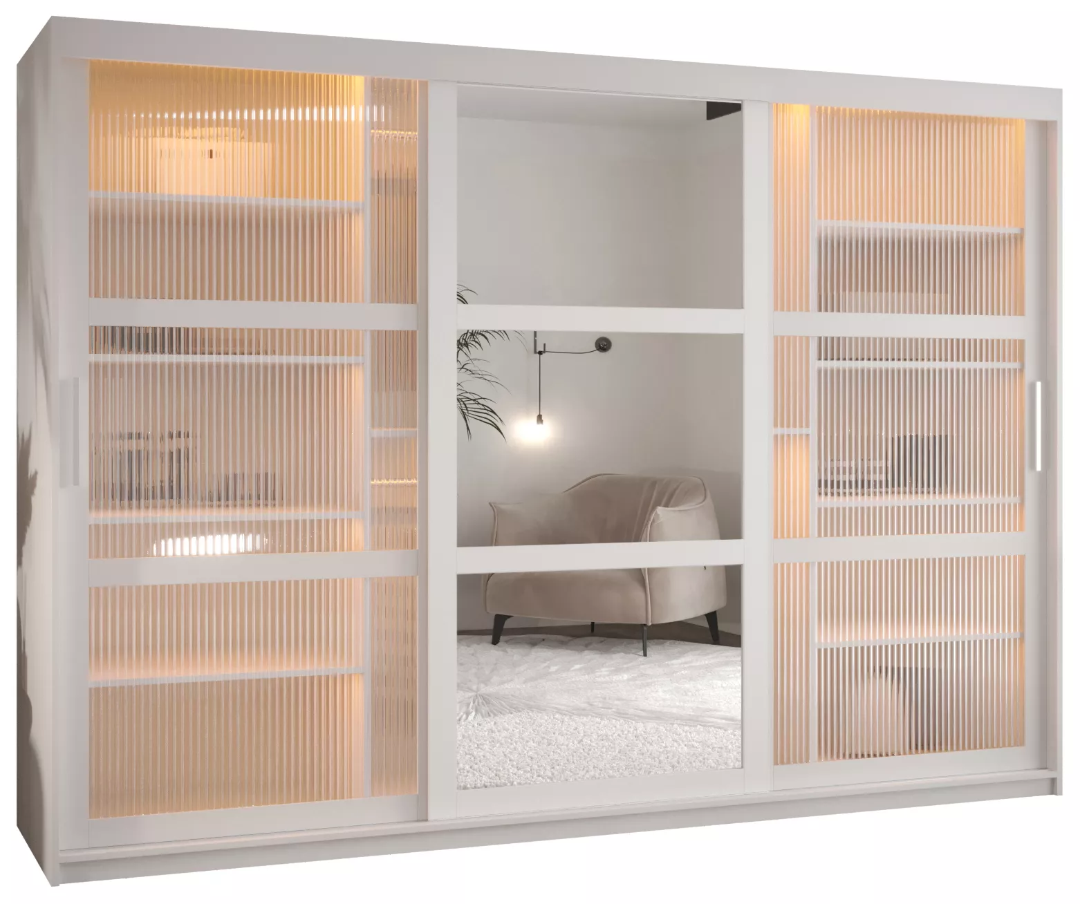 Šatní skříň SHERYL 2 - 250 cm, bílá / stříbrná