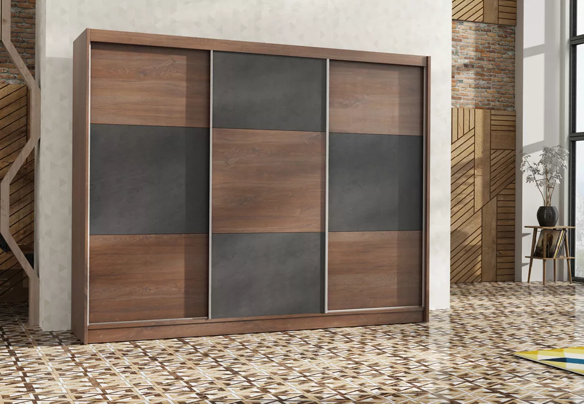 Šatní skříň 250 NAOK s posuvnými dveřmi - dub stirling / hnědý beton
