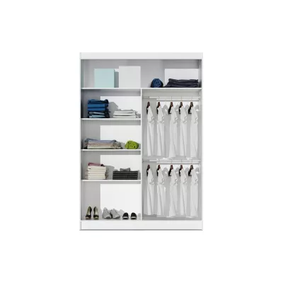 Šatní skříň s posuvnými dveřmi ELINOR se hodí do všech moderních ložnic. Skříň nabízí dostatek úložného prostoru v podobě 4 polic a 2 šatních tyčí.