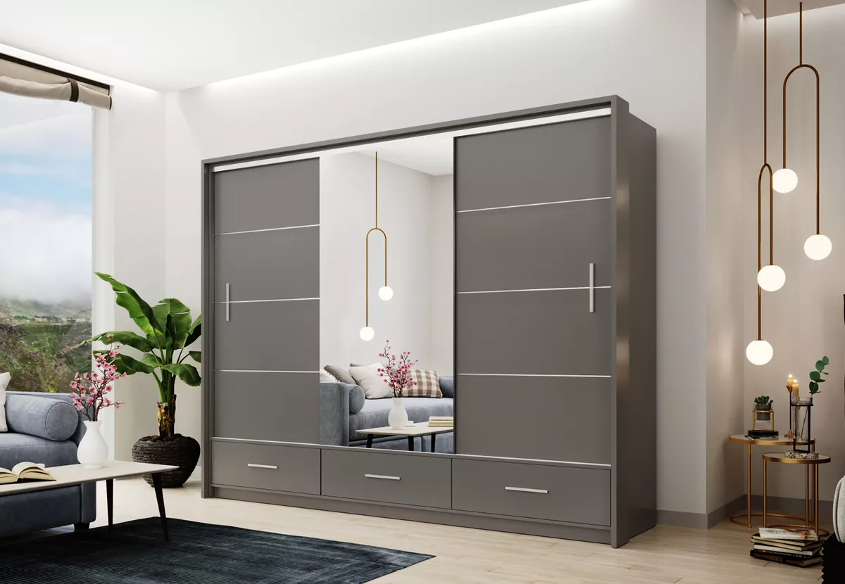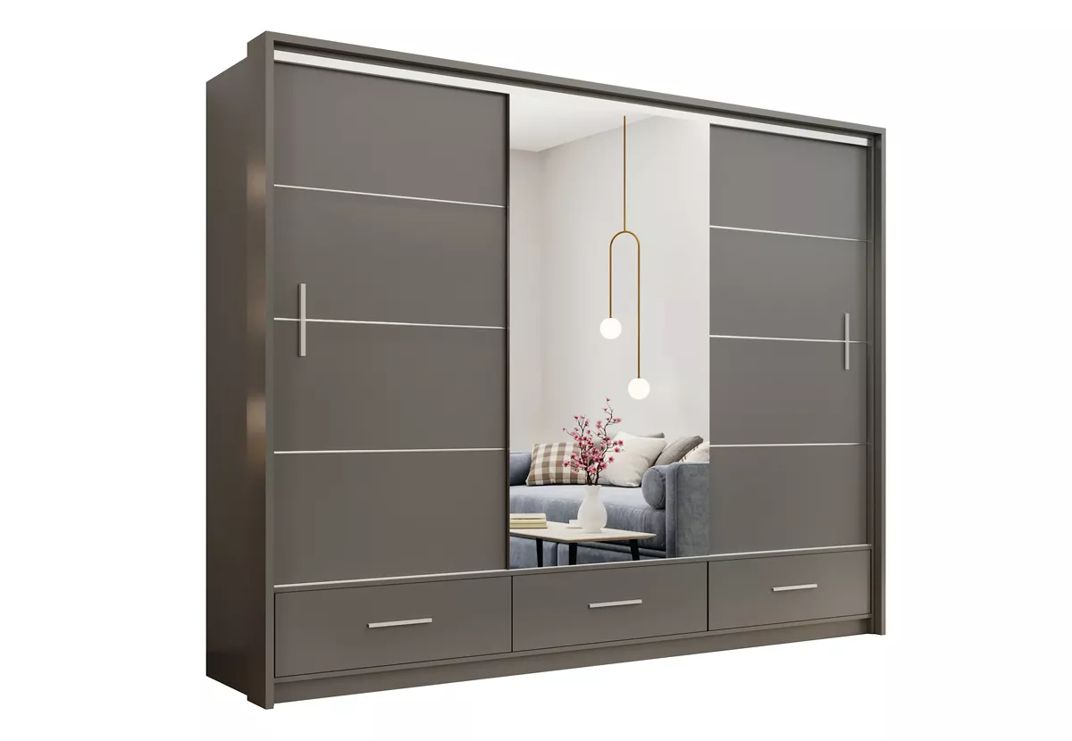 Šatní skříň 255 IREM se zrcadlem - grafitová