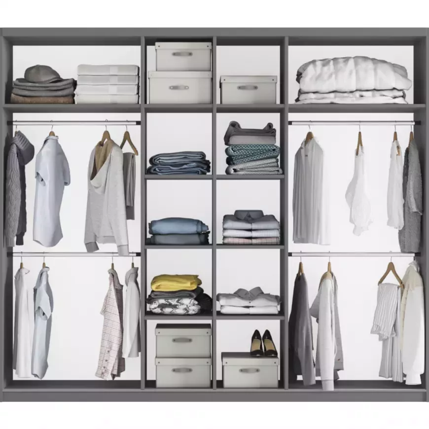 Šatní skříň se zrcadly ENOLA se hodí do všech moderních ložnic. Skříň nabízí dostatek úložného prostoru v podobě 10 polic a 4 šatních tyčí.