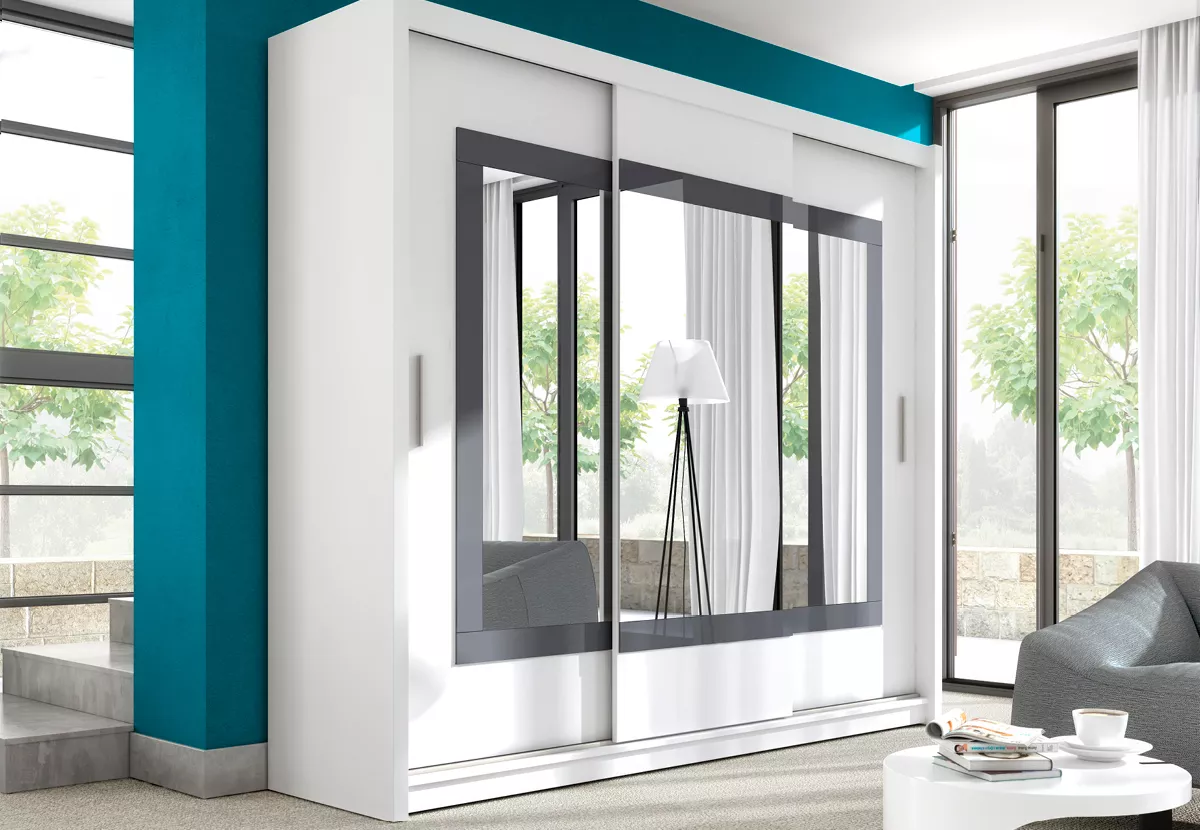 Šatní skříň 250 KLAUDIE s posuvnými dveřmi - bílá / grafitové sklo