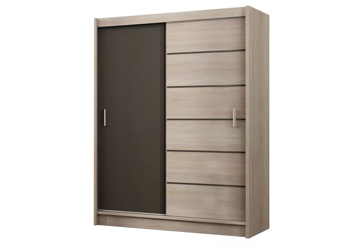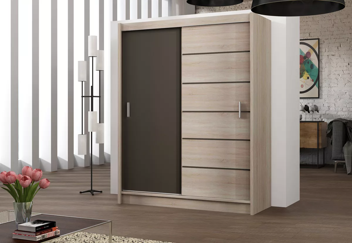 Šatní skříň 203 SOLANGE s posuvnými dveřmi - dub sonoma / šedohnědá