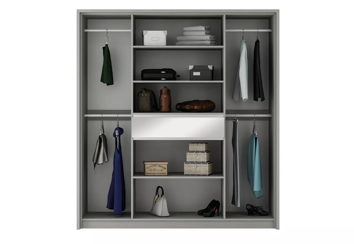 Kombinovaná šatní skříň ISABELA se hodí do všech moderních ložnic. Skříň nabízí dostatek úložného prostoru v podobě 3 polic, 1 šuplíku a 4 šatních tyčí.