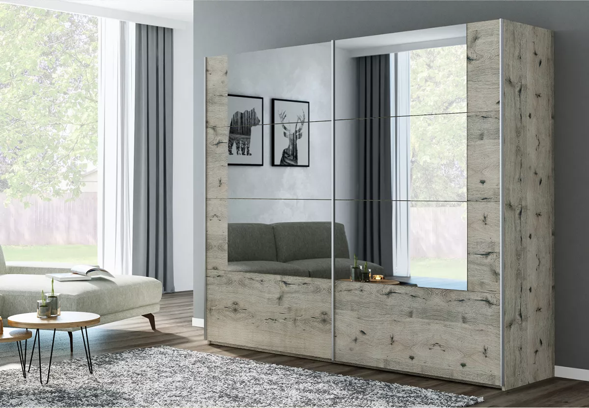 Šatní skříň 250 ILSA se zrcadly - dub wellington
