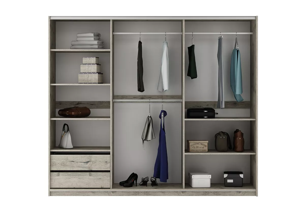 Šatní skříň se zrcadly ILSA se hodí do všech moderních ložnic. Skříň nabízí dostatek úložného prostoru v podobě 5 polic, 2 šuplíků a 3 šatních tyčí.