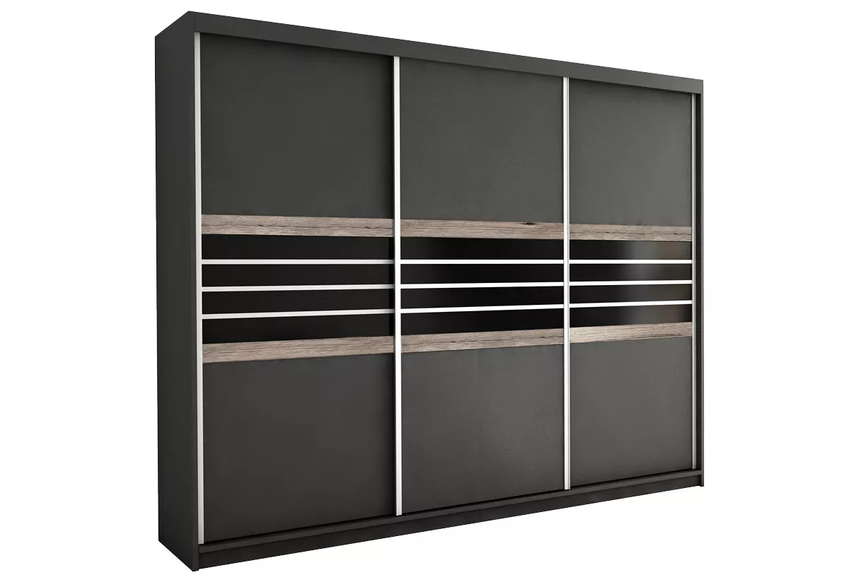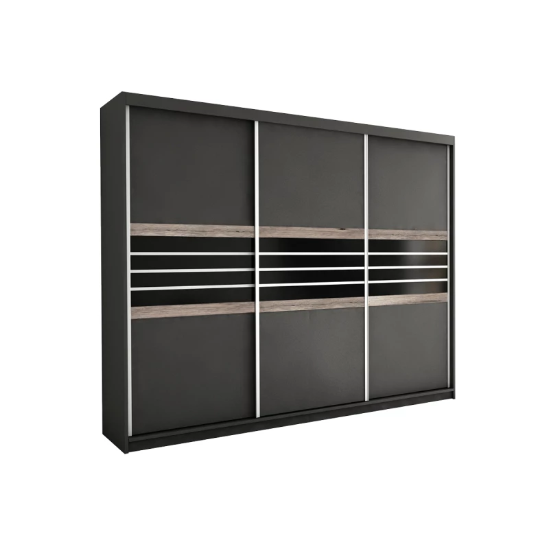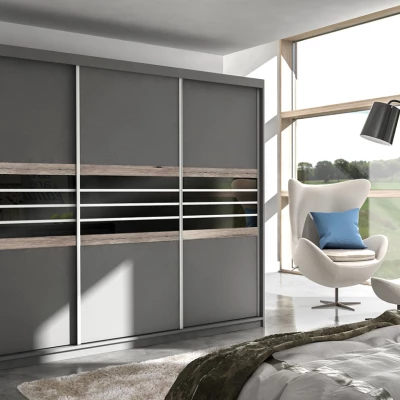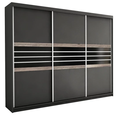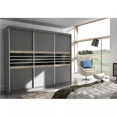 Šatní skříň 250 DIONE s posuvnými dveřmi - šedohnědá / černé sklo