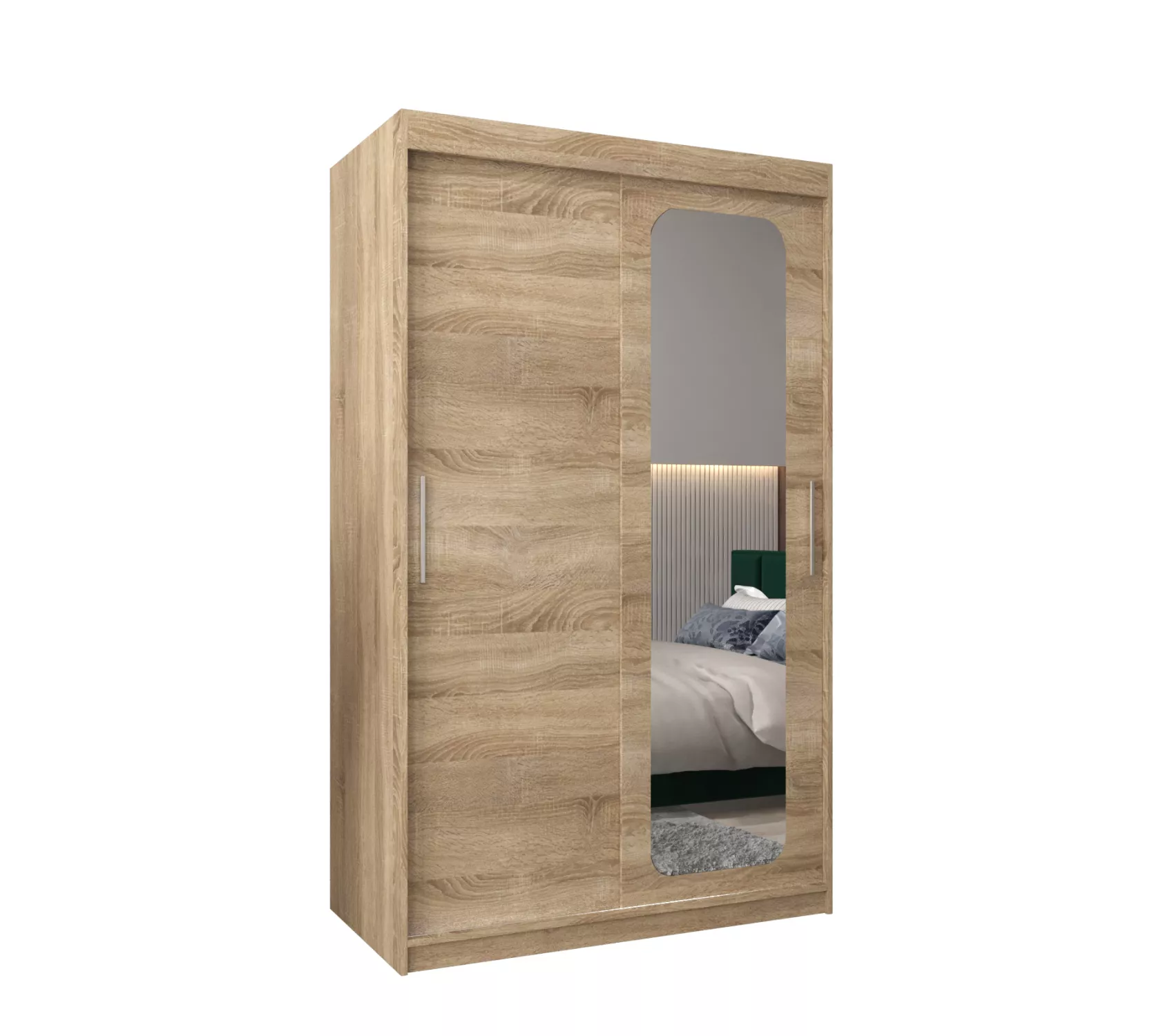 Zrcadlová skříň DONICELA zaujme především moderním designem a oválným zrcadlem. Vnitřek skříně je vybaven policovým systémem a 2 šatními tyčemi.