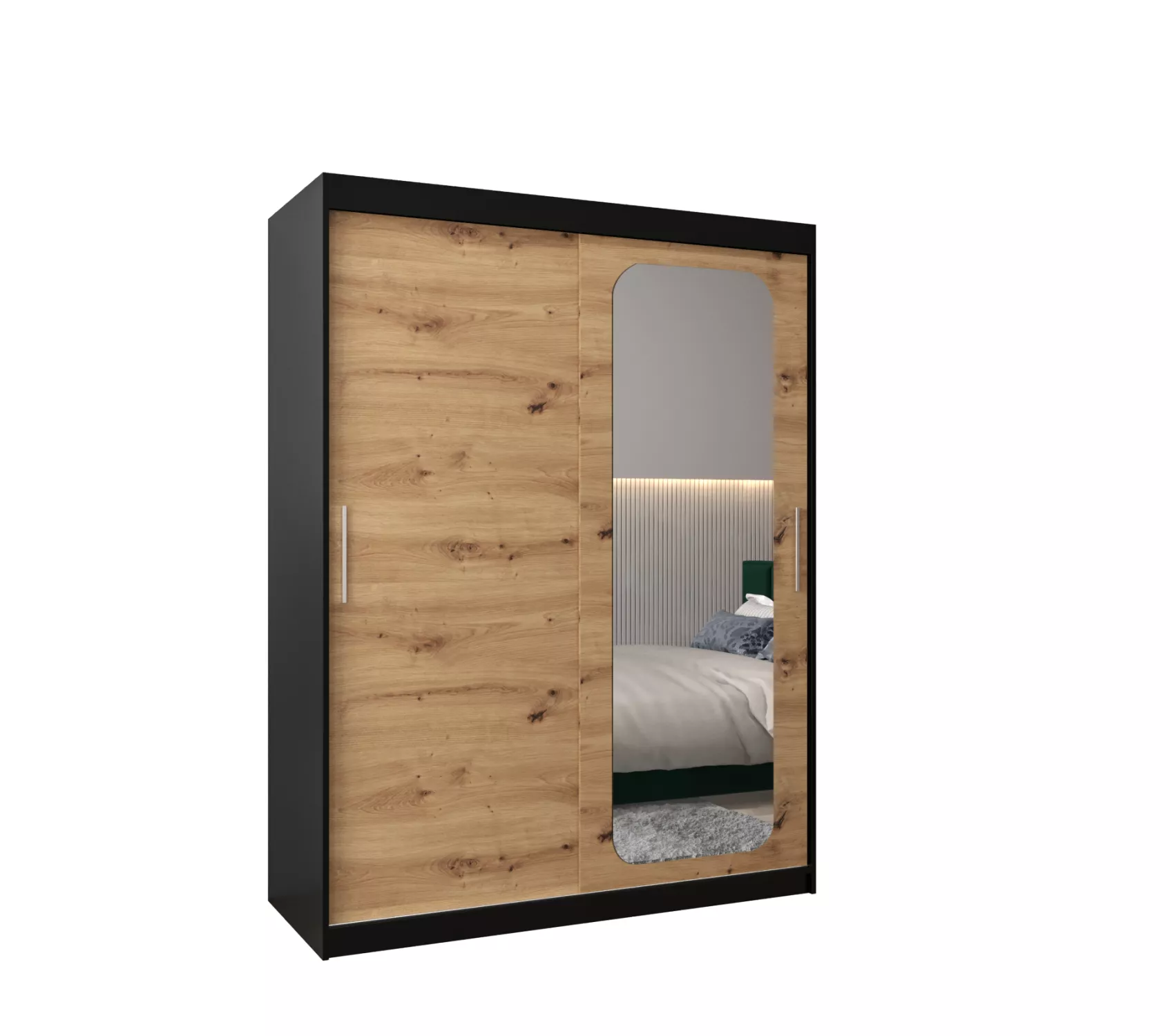 Zrcadlová skříň DONICELA zaujme především moderním designem a oválným zrcadlem. Vnitřek skříně je vybaven policovým systémem a 2 šatními tyčemi.