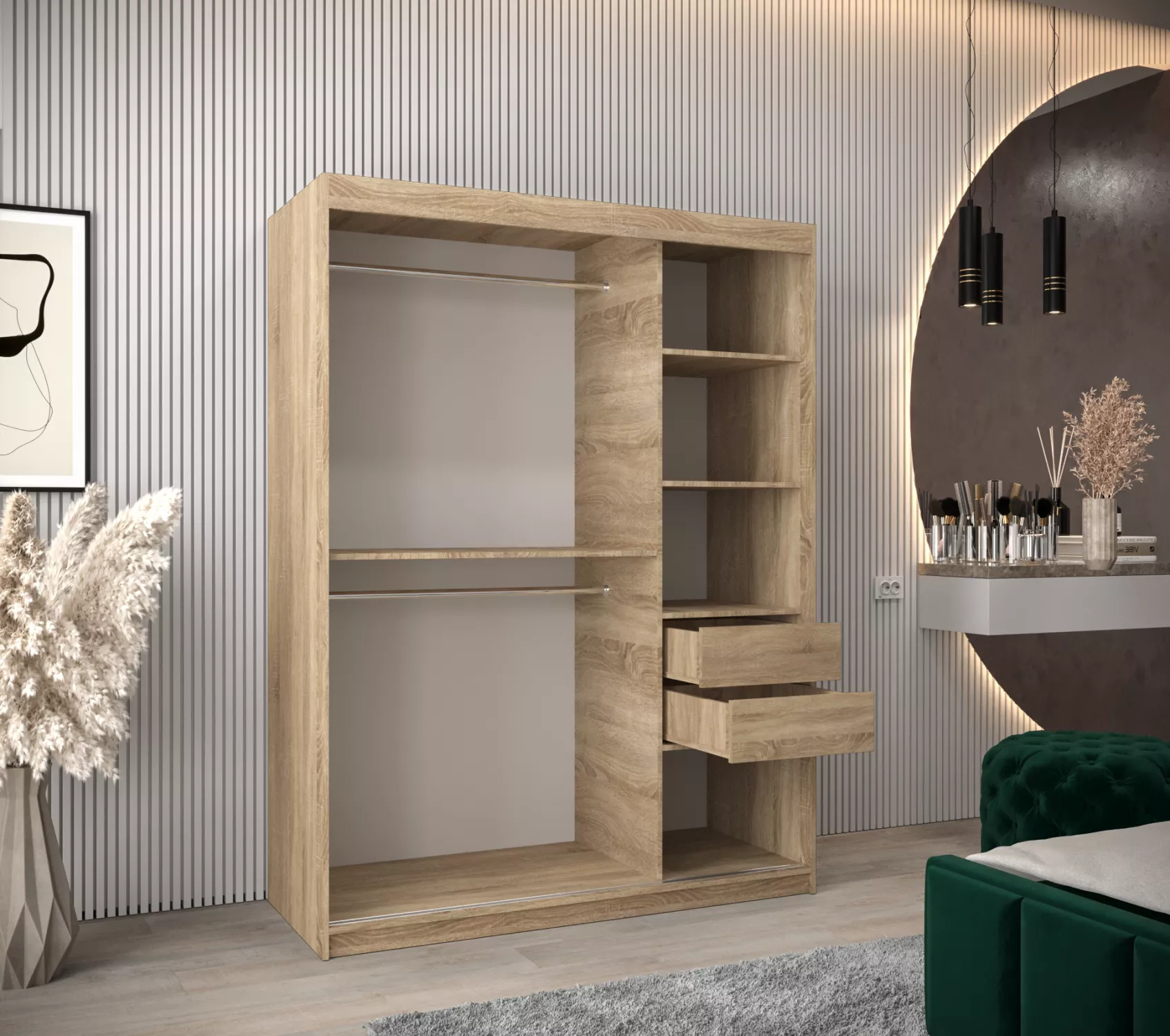 Šuplíky vyobrazené na fotografii dokoupíte v sekci „Doporučujeme přikoupit“. Pořídíte je v setu po 2 kusech včetně vodících lišt (pojezdů). Do skříně je možné nainstalovat 1 set šuplíků.