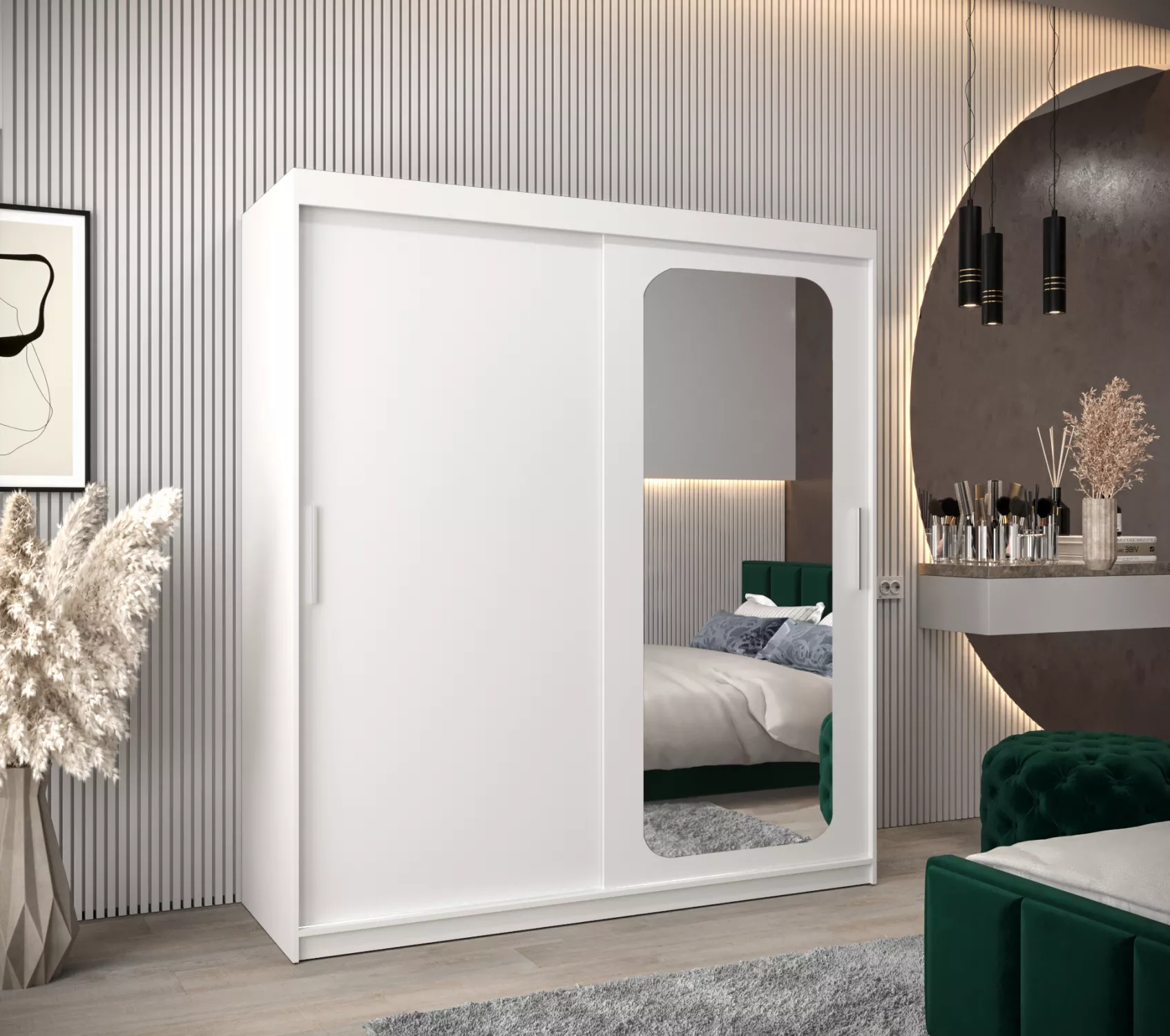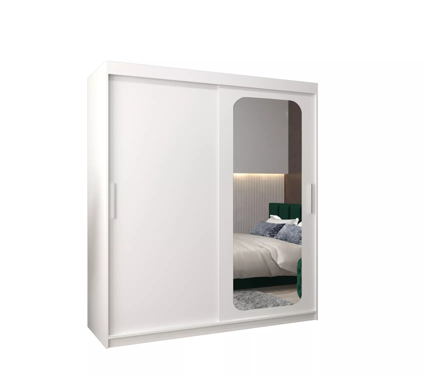 Zrcadlová skříň DONICELA zaujme především moderním designem a oválným zrcadlem. Vnitřek skříně je vybaven policovým systémem a 2 šatními tyčemi.