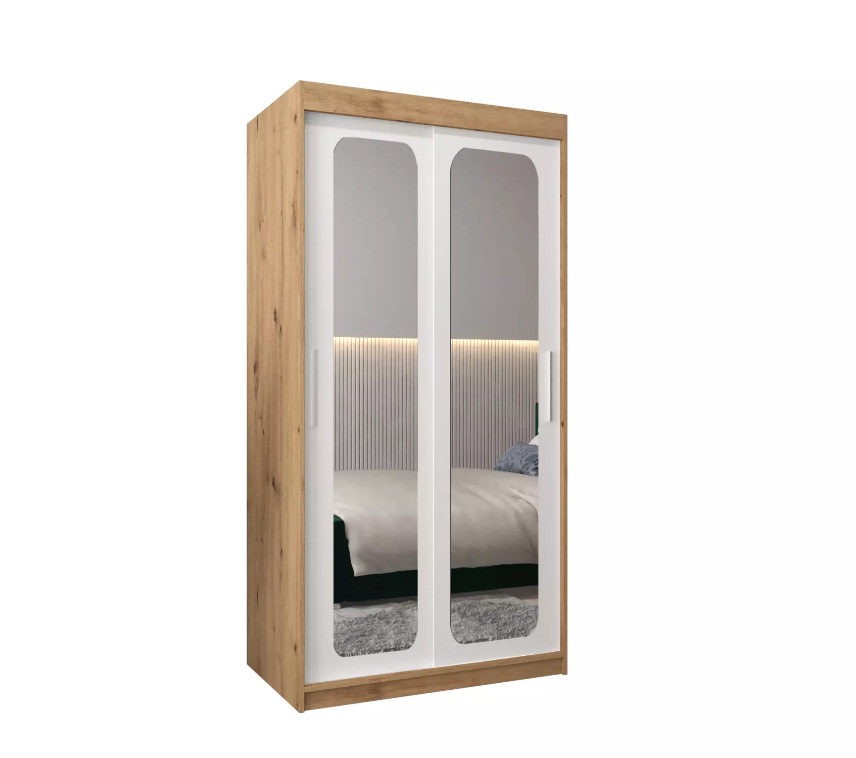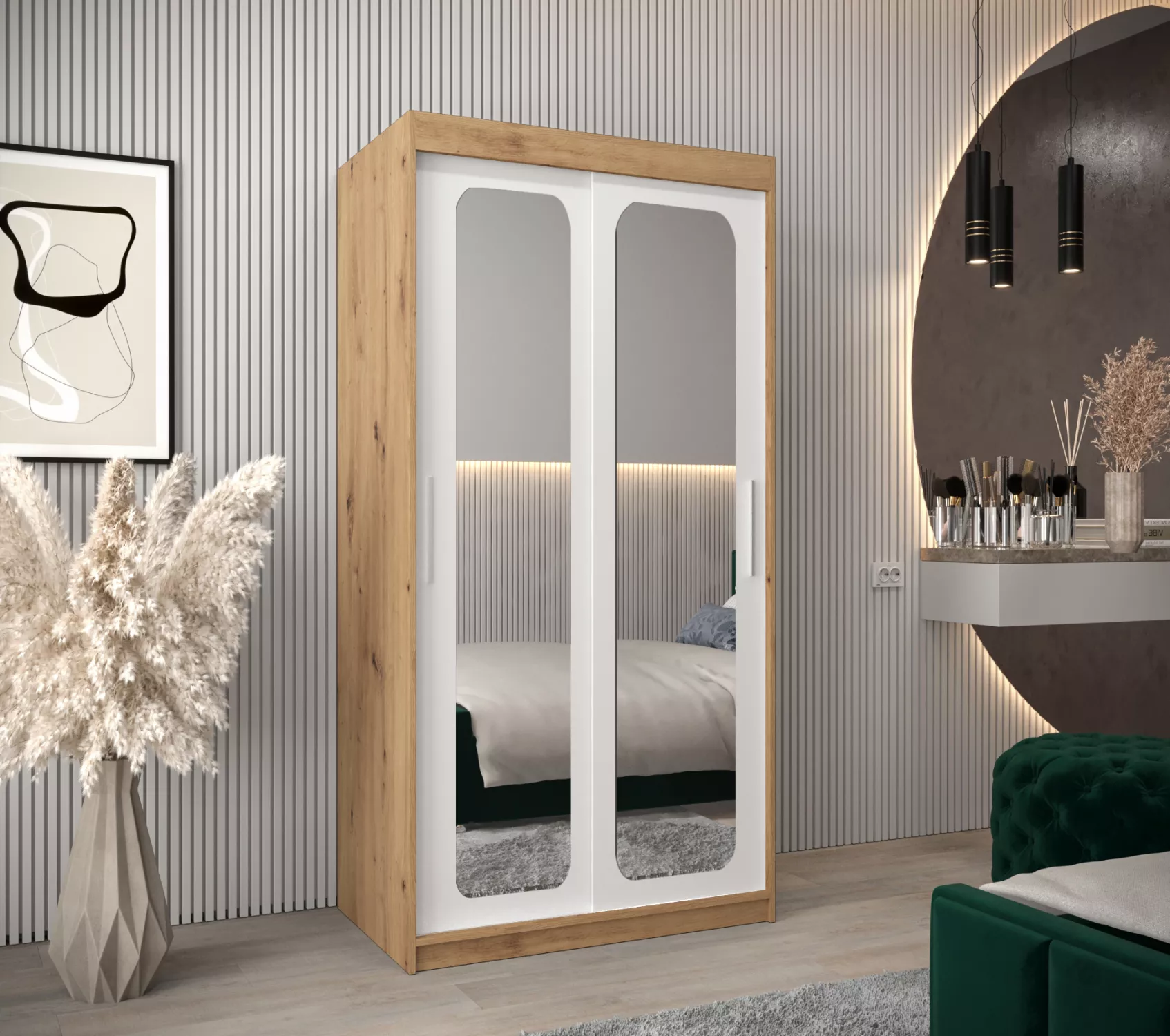 Zrcadlová skříň DONICELA zaujme především moderním designem a oválnými zrcadly. Vnitřek skříně je vybaven policovým systémem a 2 šatními tyčemi.