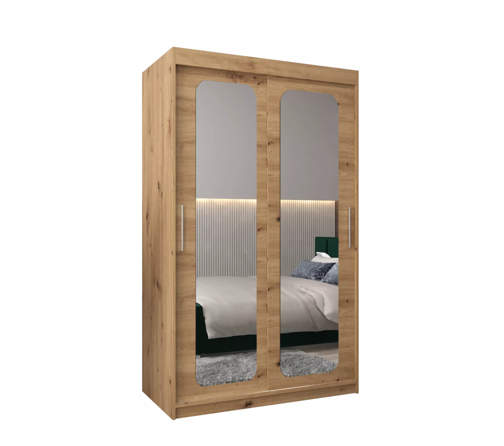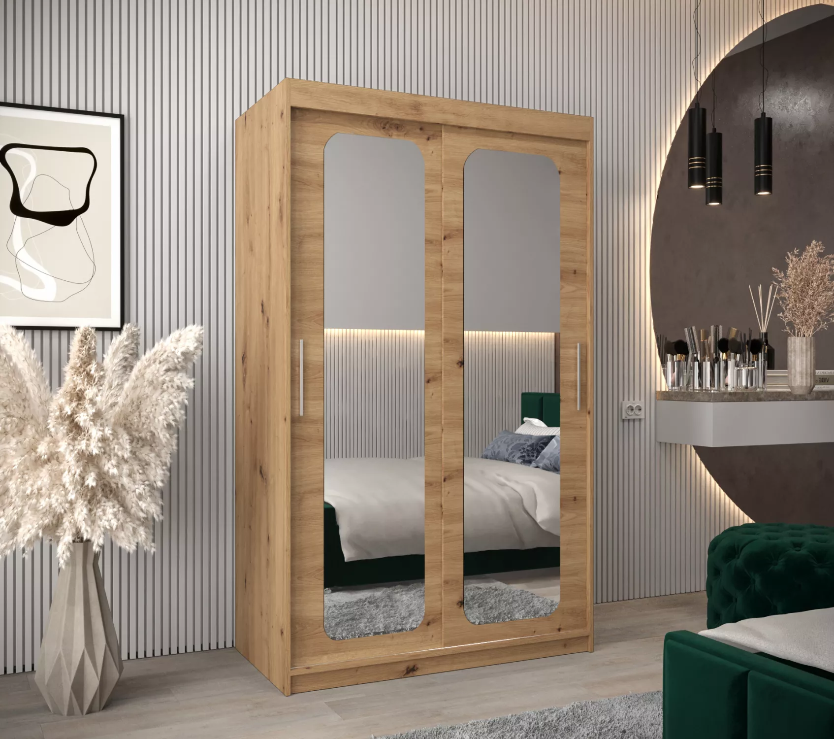Zrcadlová skříň DONICELA zaujme především moderním designem a oválnými zrcadly. Vnitřek skříně je vybaven policovým systémem a 2 šatními tyčemi.