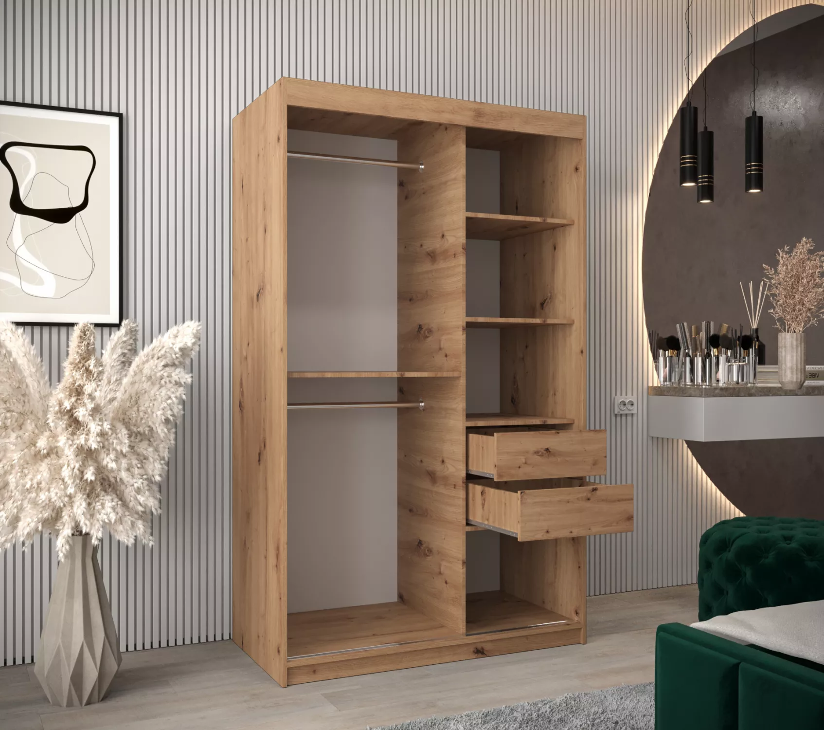 Šuplíky vyobrazené na fotografii dokoupíte v sekci „Doporučujeme přikoupit“. Pořídíte je v setu po 2 kusech včetně vodících lišt (pojezdů). Do skříně je možné nainstalovat 1 set šuplíků.