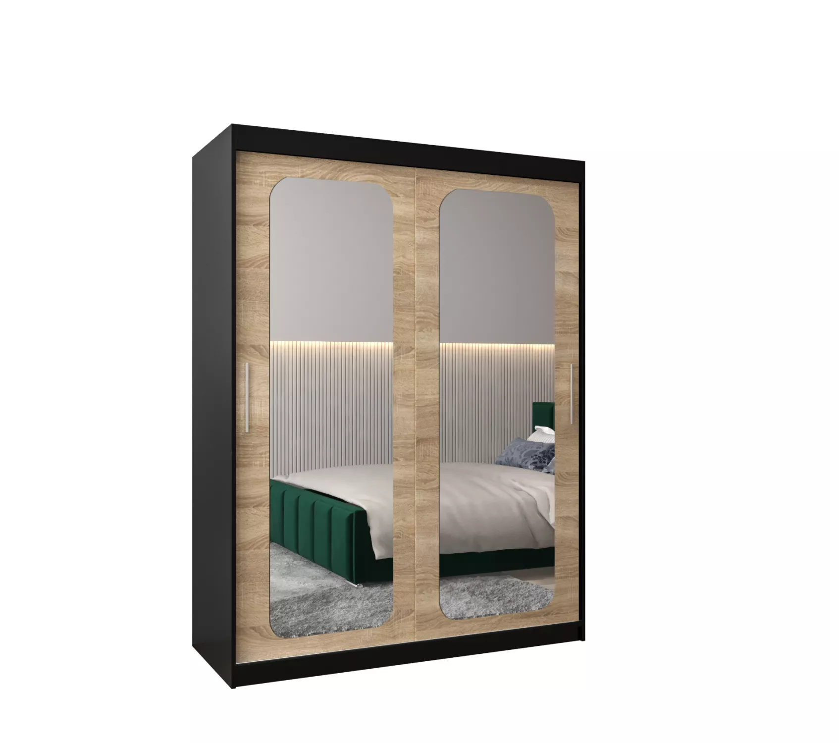 Zrcadlová skříň DONICELA 2 - 150 cm, černá / sonoma