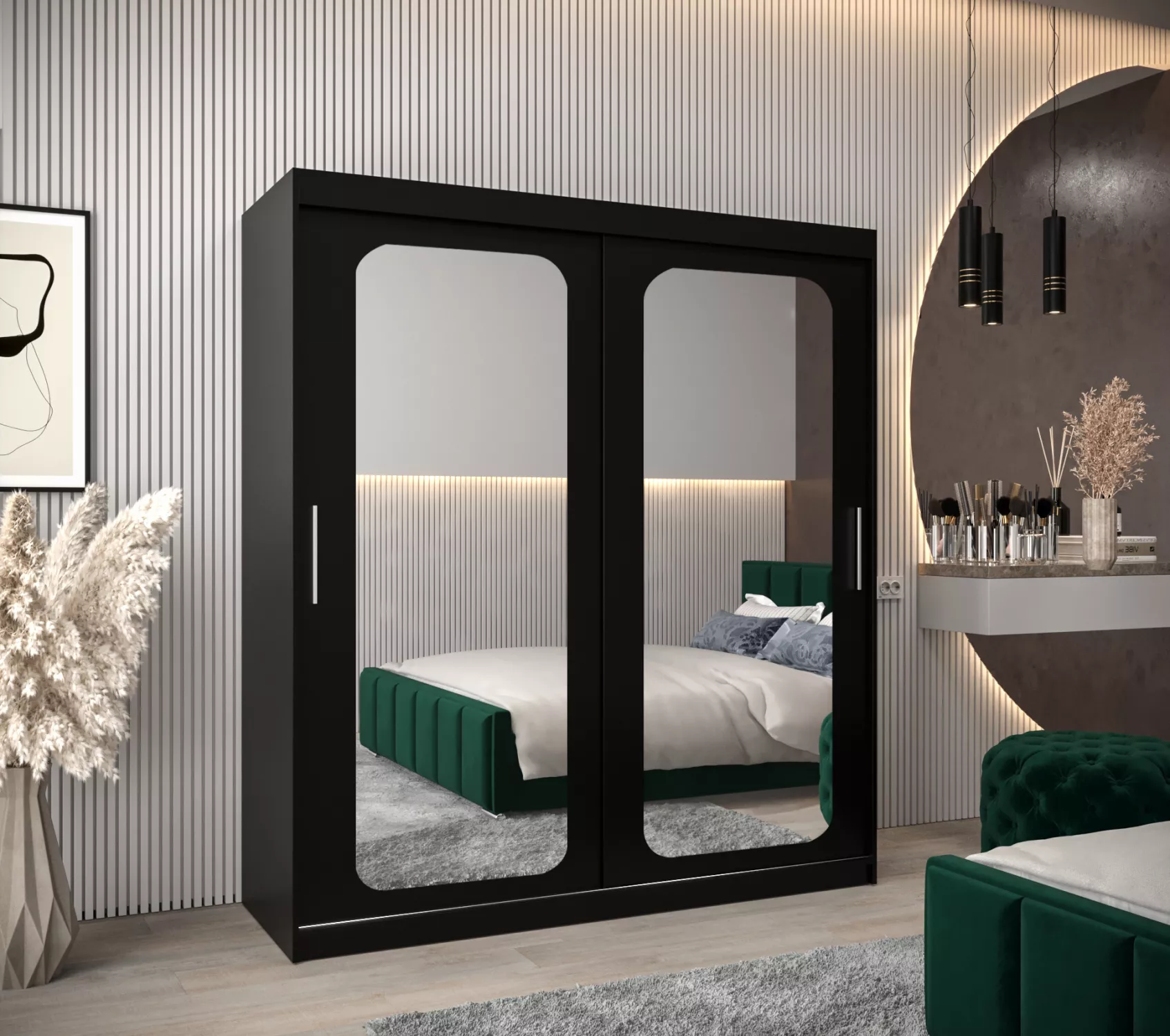 Zrcadlová skříň DONICELA 2 - 180 cm, černá