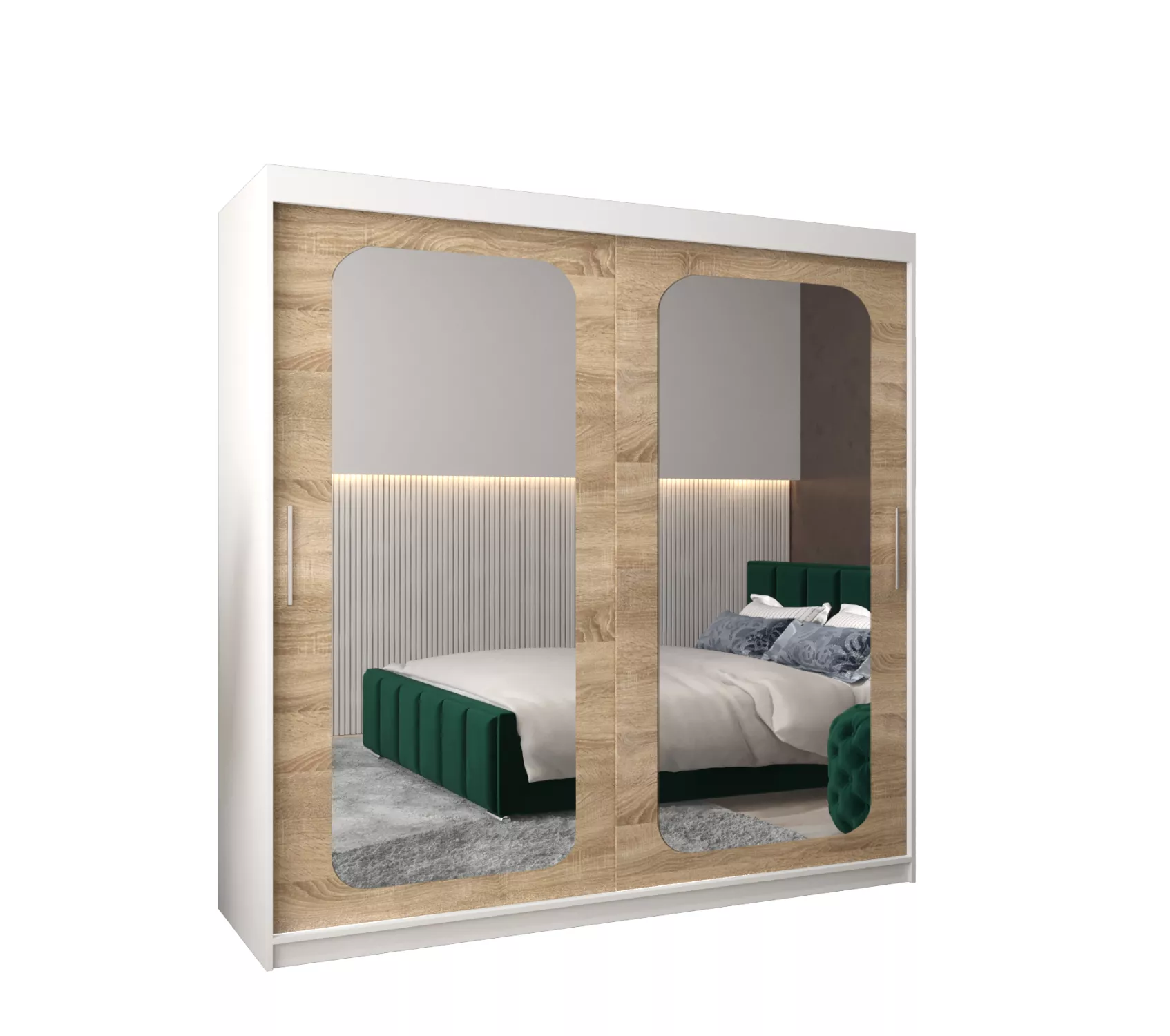Zrcadlová skříň DONICELA 2 - 200 cm, bílá / sonoma