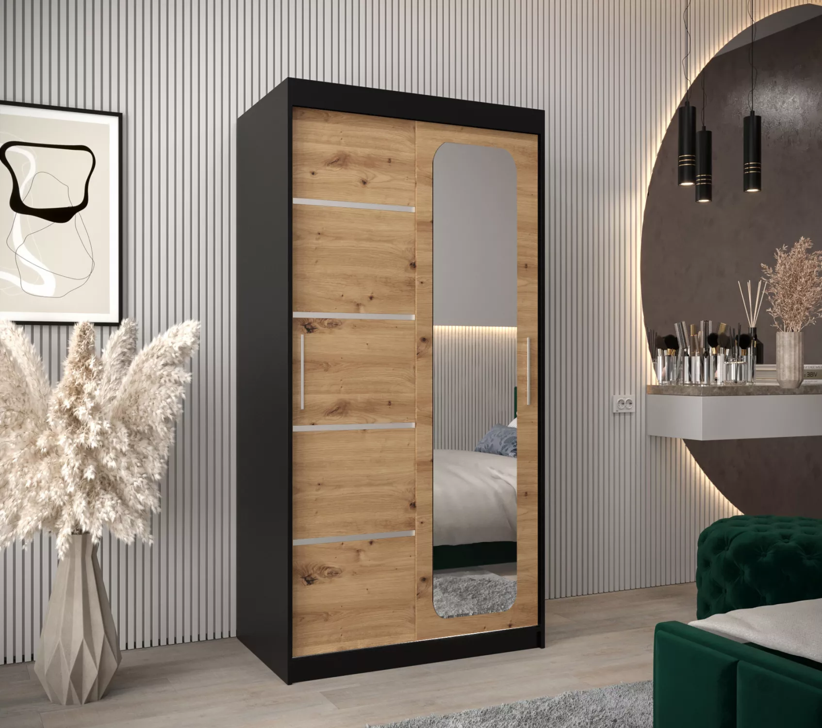 Zrcadlová skříň DONICELA 3 - 100 cm, černá / artisan
