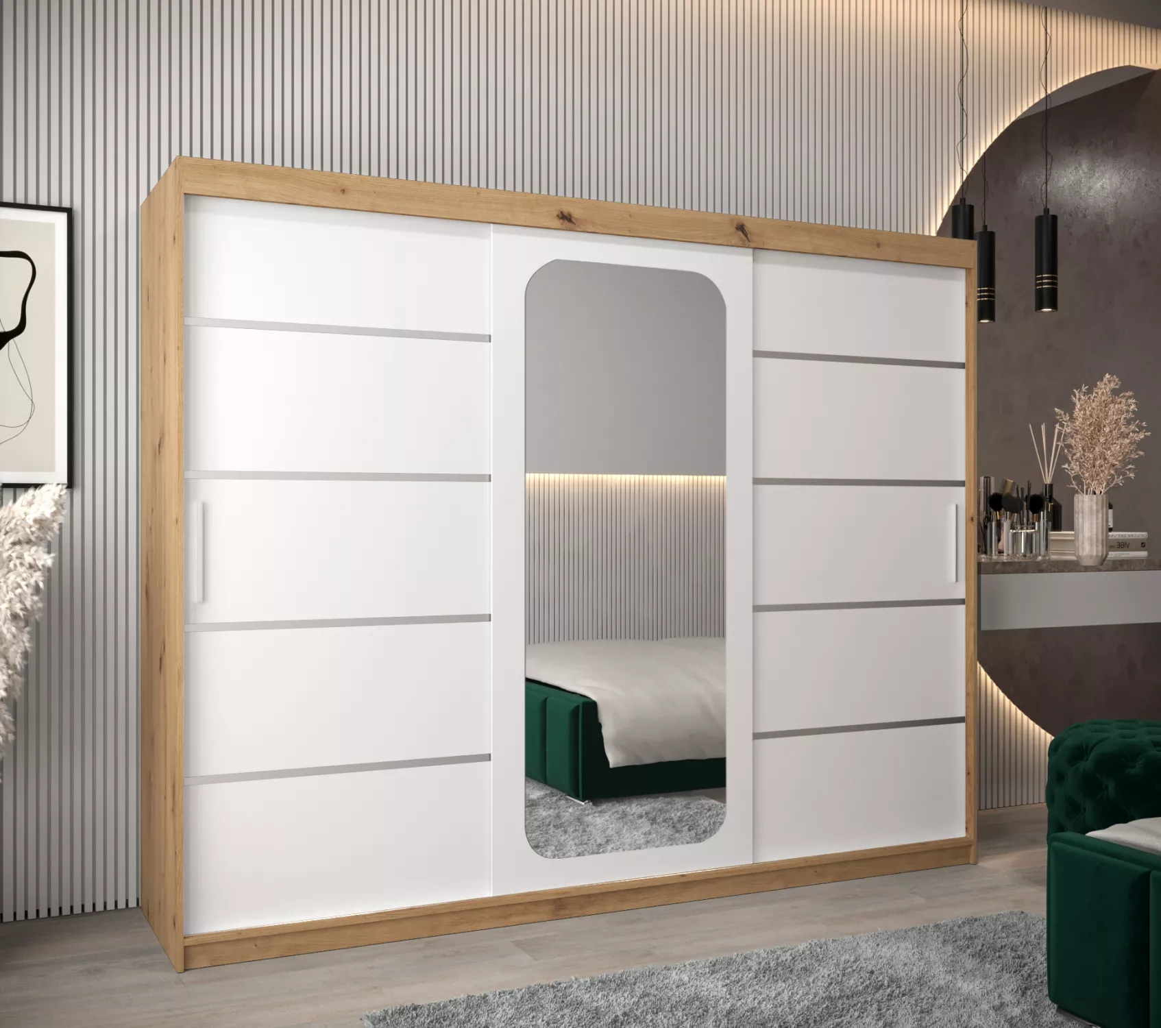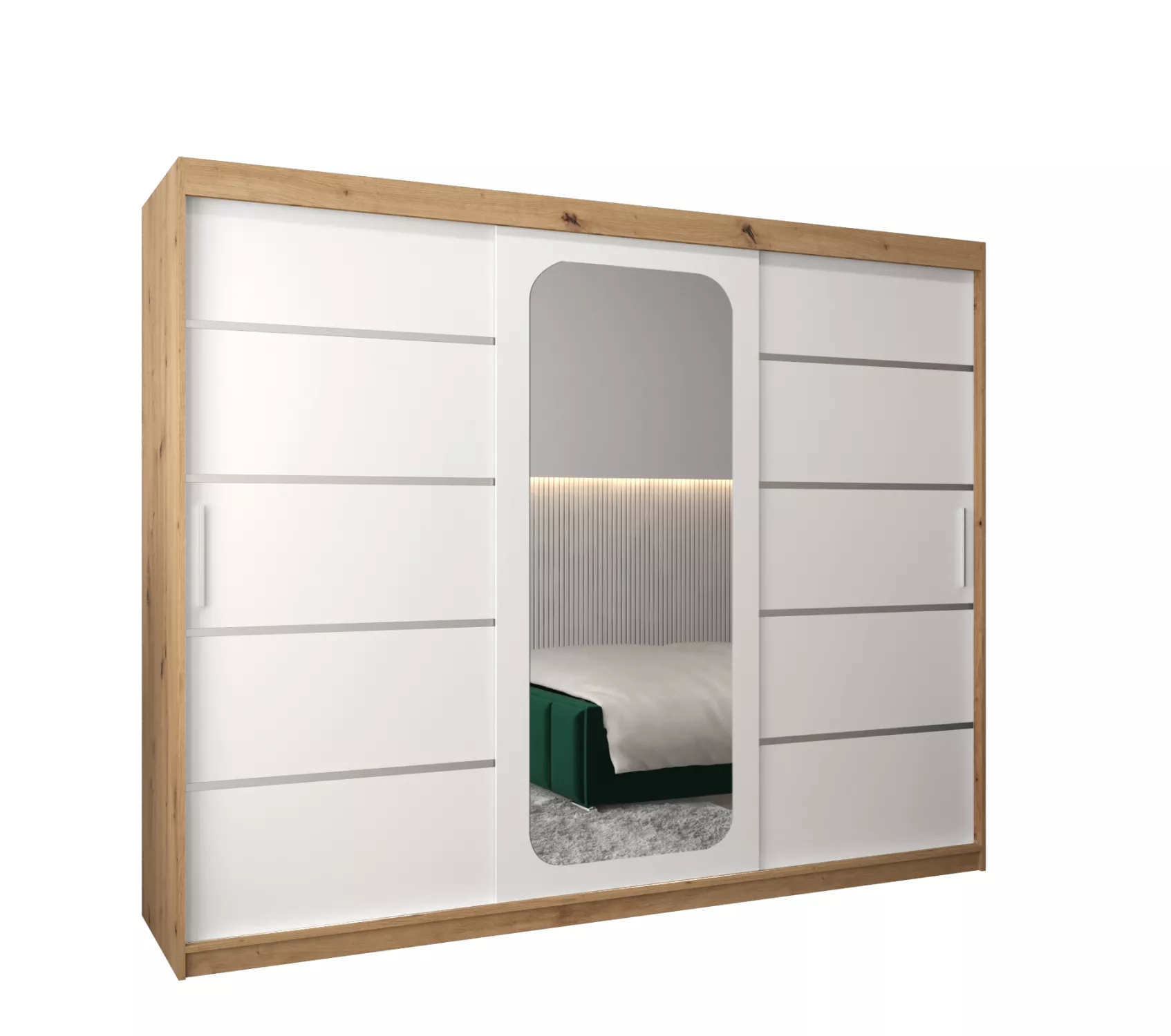 Zrcadlová skříň DONICELA 3 - 250 cm, artisan / bílá