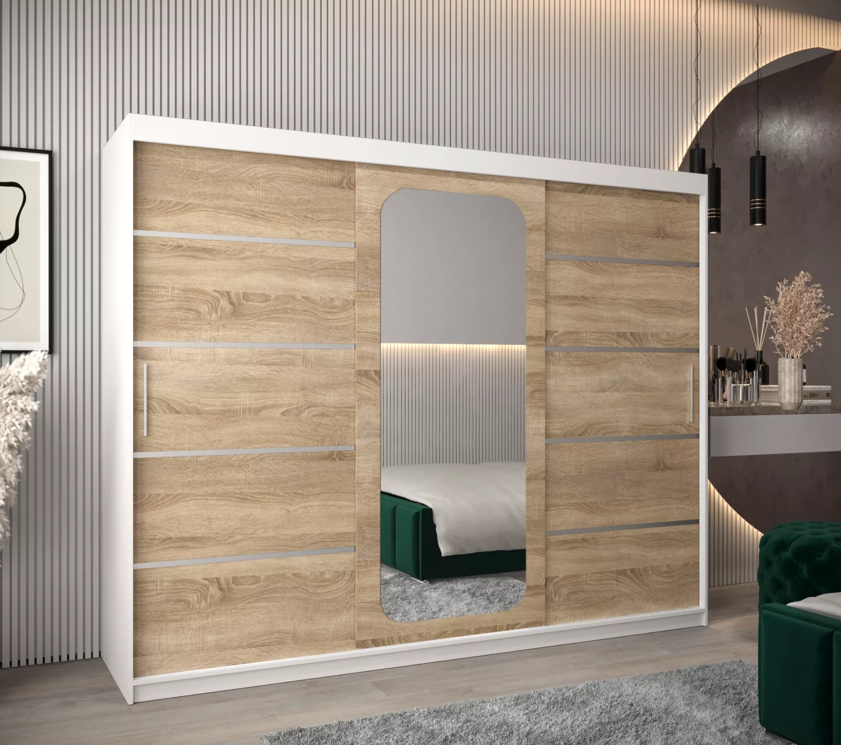 Zrcadlová skříň DONICELA 3 - 250 cm, bílá / sonoma