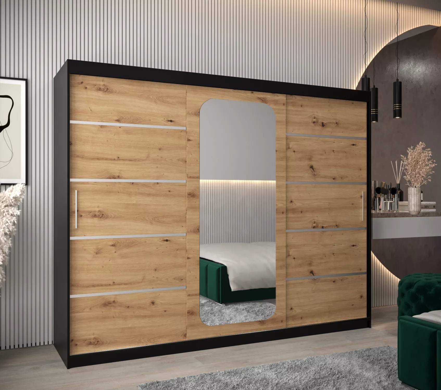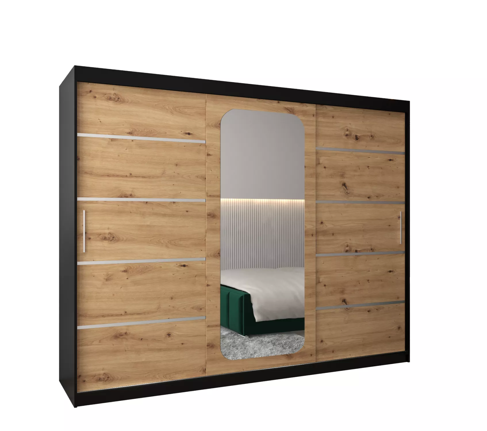 Zrcadlová skříň DONICELA 3 - 250 cm, černá / artisan
