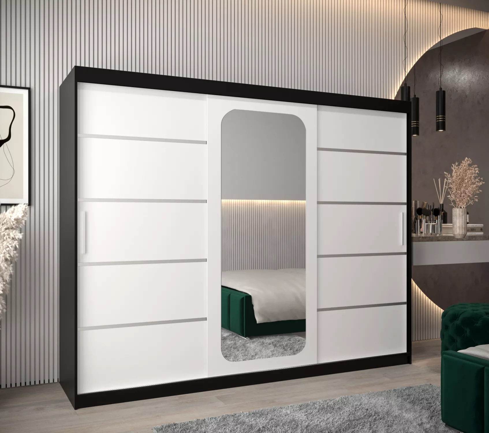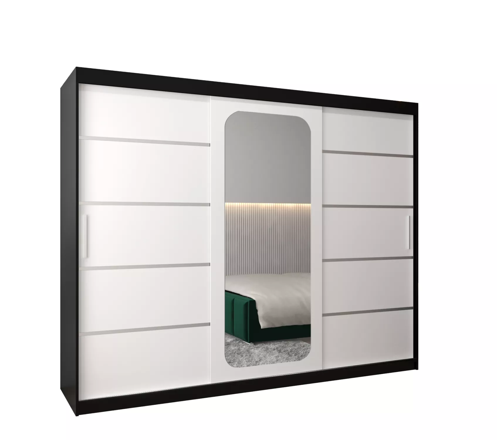 Zrcadlová skříň DONICELA 3 - 250 cm, černá / bílá