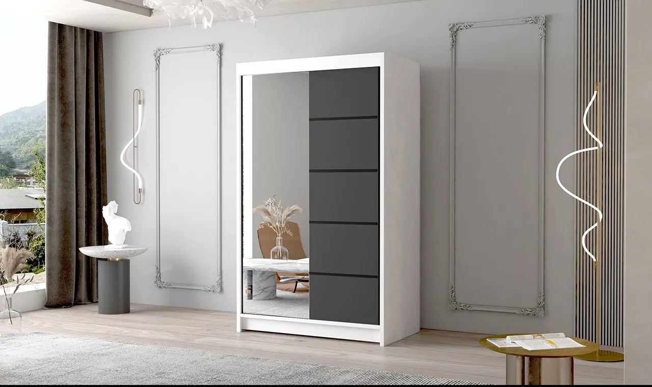 Dvoudveřová skříň se zrcadlem NICA - šířka 120 cm, bílá / černá