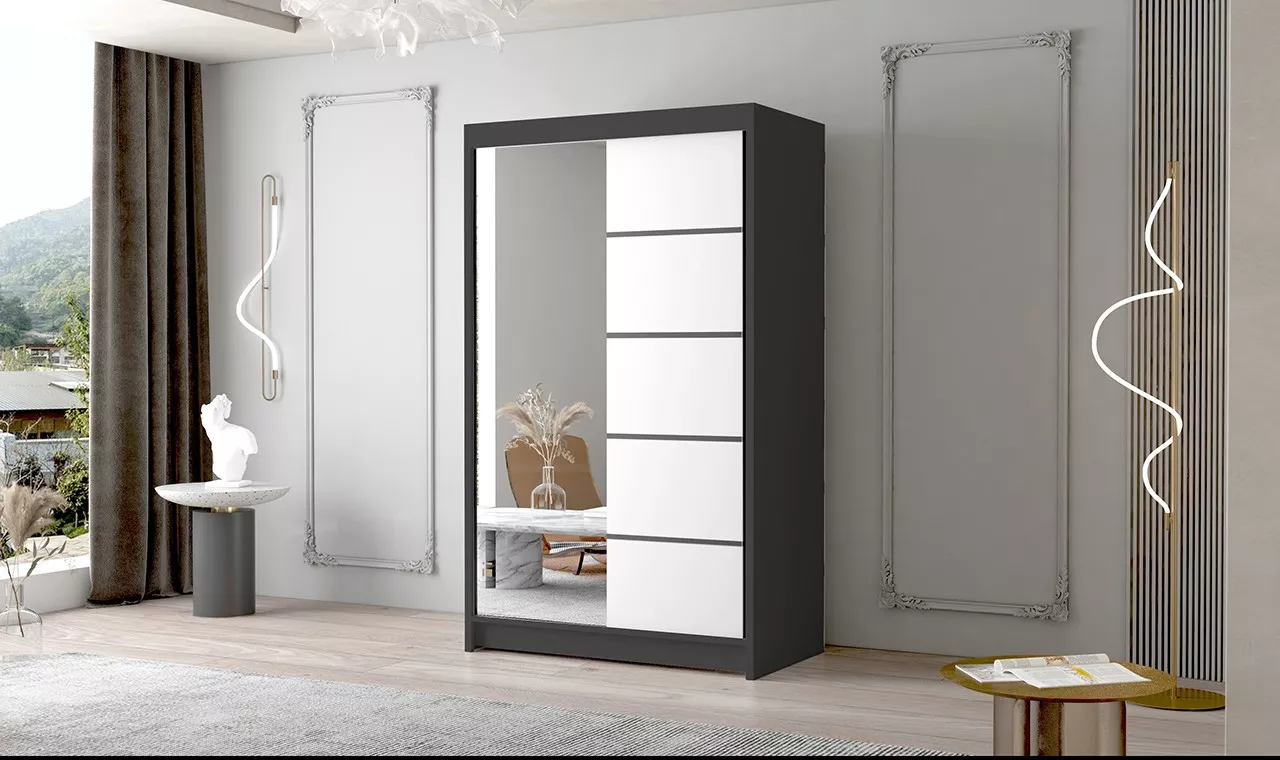 Dvoudveřová skříň se zrcadlem NICA - šířka 120 cm, černá / bílá