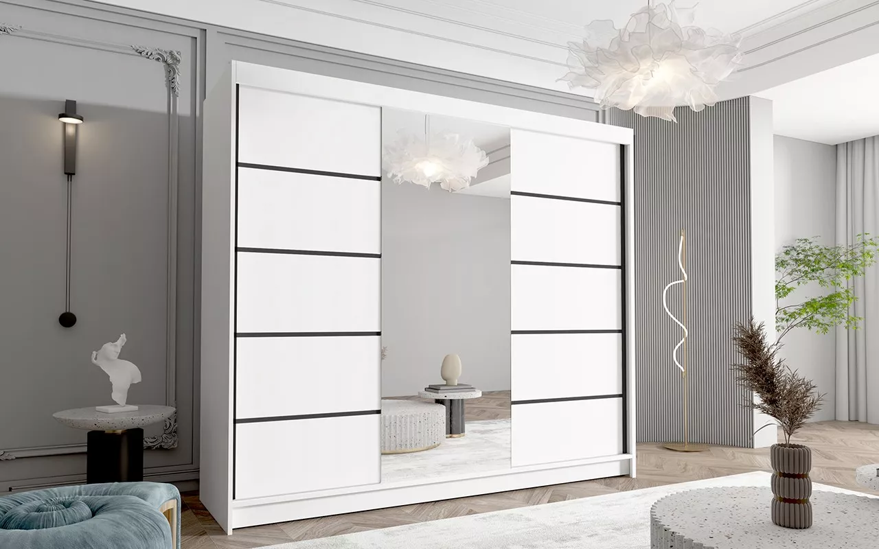 Třídveřová skříň se zrcadlem NICA - šířka 250 cm, bílá