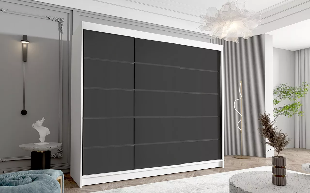 Třídveřová šatní skříň NICA - šířka 250 cm, bílá / černá