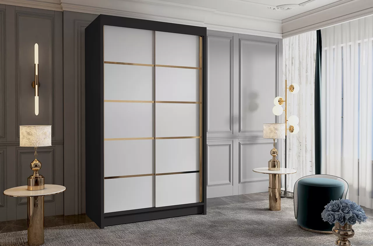 Šatní skříň MILINA - 100 cm, černá / bílá