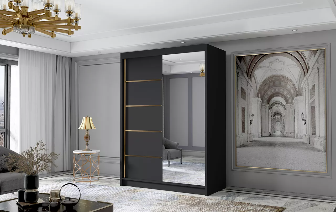 Šatní skříň se zrcadlem MILINA - 120 cm, černá