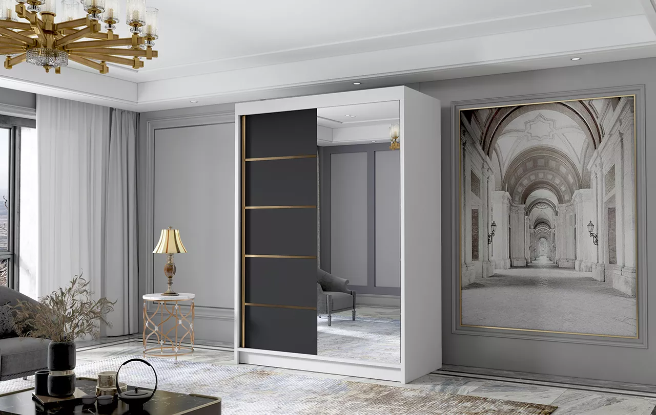 Šatní skříň MILINA skvěle doplní váš interiér. Praktické posuvné dveře oceníte v boji s nedostatkem místa. Nabídka se vyznačuje nejen moderním designem, ale také stabilní strukturou. Uvnitř skříně jsou police a šatní tyč.