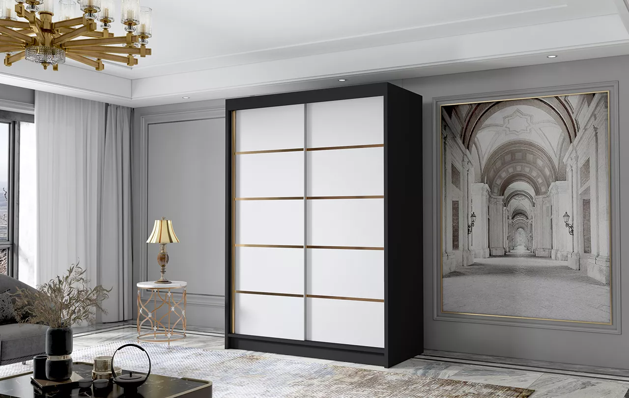 Šatní skříň MILINA - 120 cm, černá / bílá