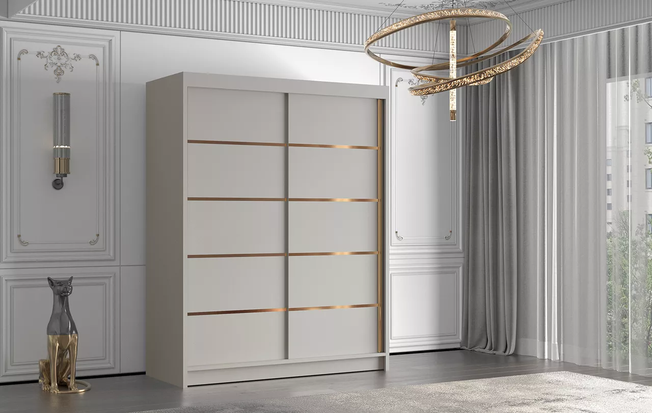 Šatní skříň MILINA skvěle doplní váš interiér. Praktické posuvné dveře oceníte v boji s nedostatkem místa. Nabídka se vyznačuje nejen moderním designem, ale také stabilní strukturou. Uvnitř skříně jsou police a šatní tyč.