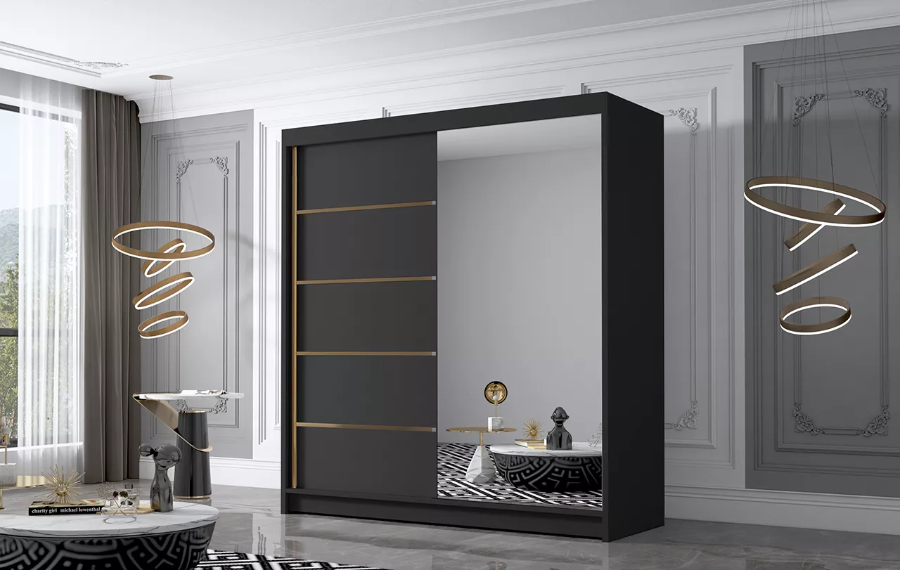 Šatní skříň se zrcadlem MILINA - 180 cm, černá