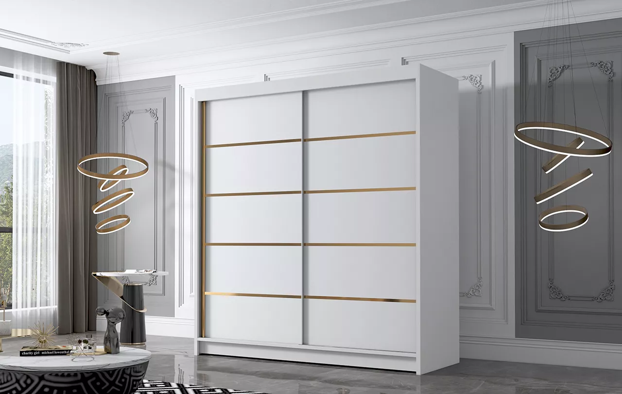 Šatní skříň MILINA skvěle doplní váš interiér. Praktické posuvné dveře oceníte v boji s nedostatkem místa. Nabídka se vyznačuje nejen moderním designem, ale také stabilní strukturou. Uvnitř skříně jsou police a šatní tyč.