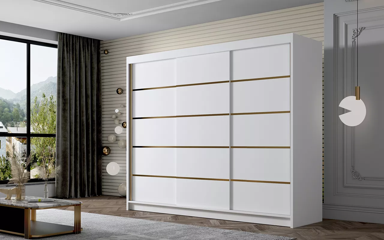 Šatní skříň MILINA skvěle doplní váš interiér. Praktické posuvné dveře oceníte v boji s nedostatkem místa. Nabídka se vyznačuje nejen moderním designem, ale také stabilní strukturou. Uvnitř skříně jsou police a šatní tyč.