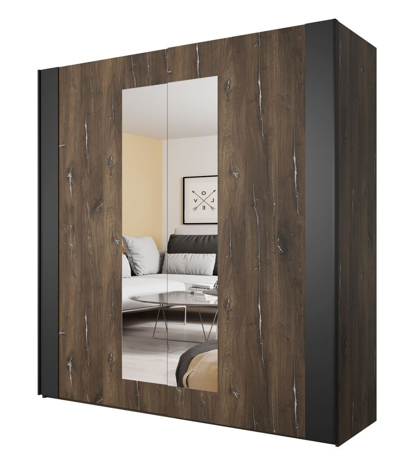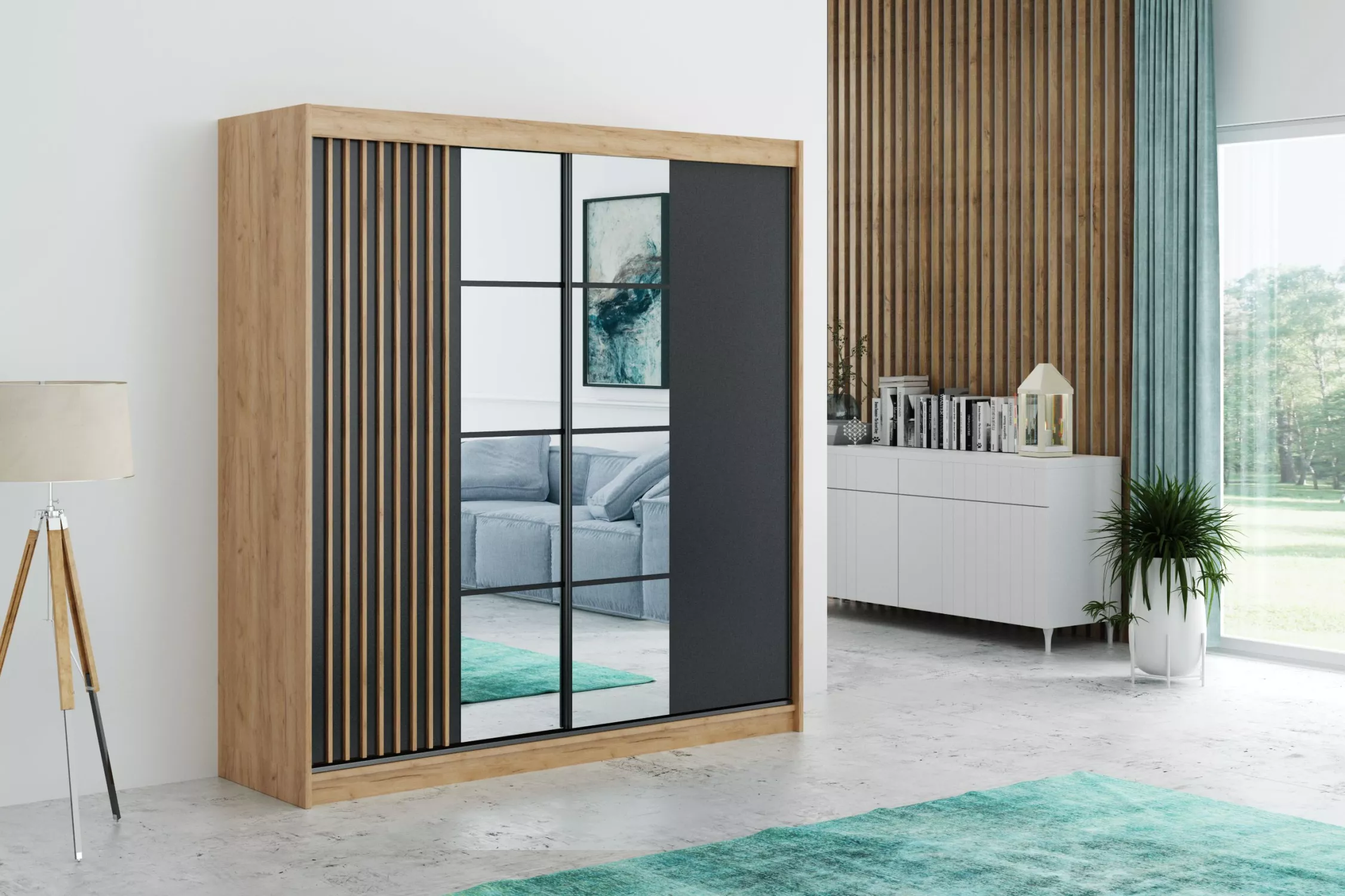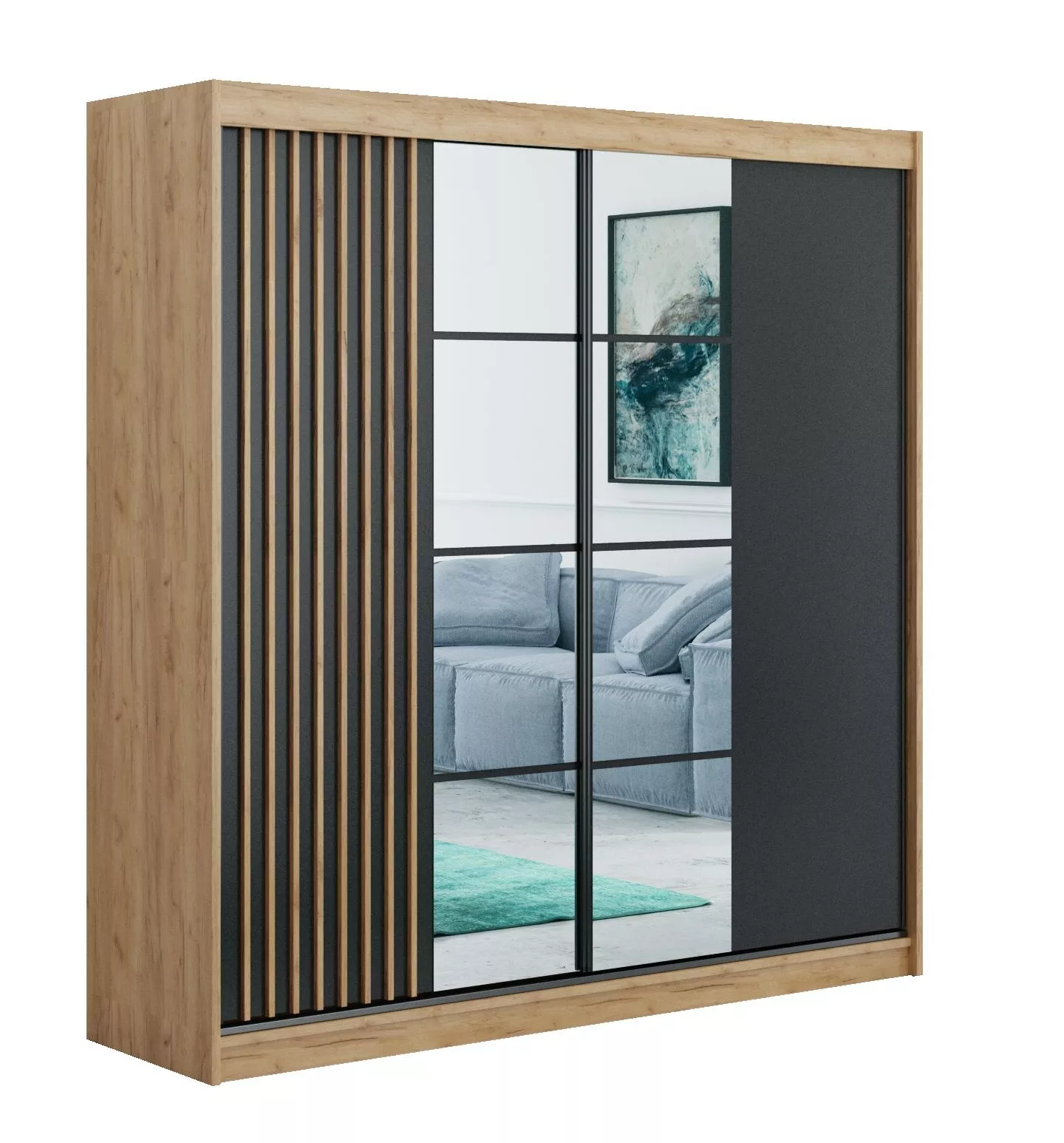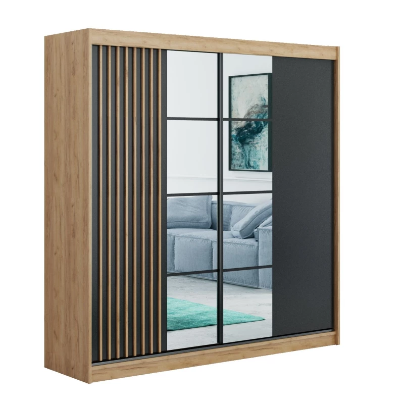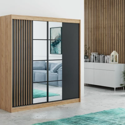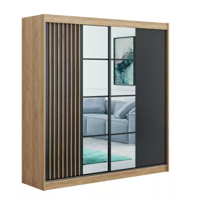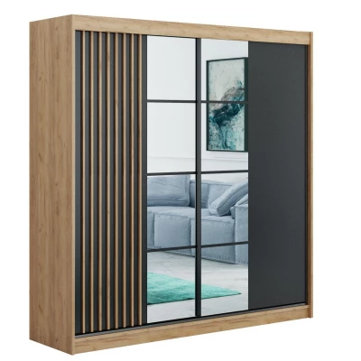 Šatní skříň 203 NEVENA s posuvnými dveřmi - dub craft zlatý / černá