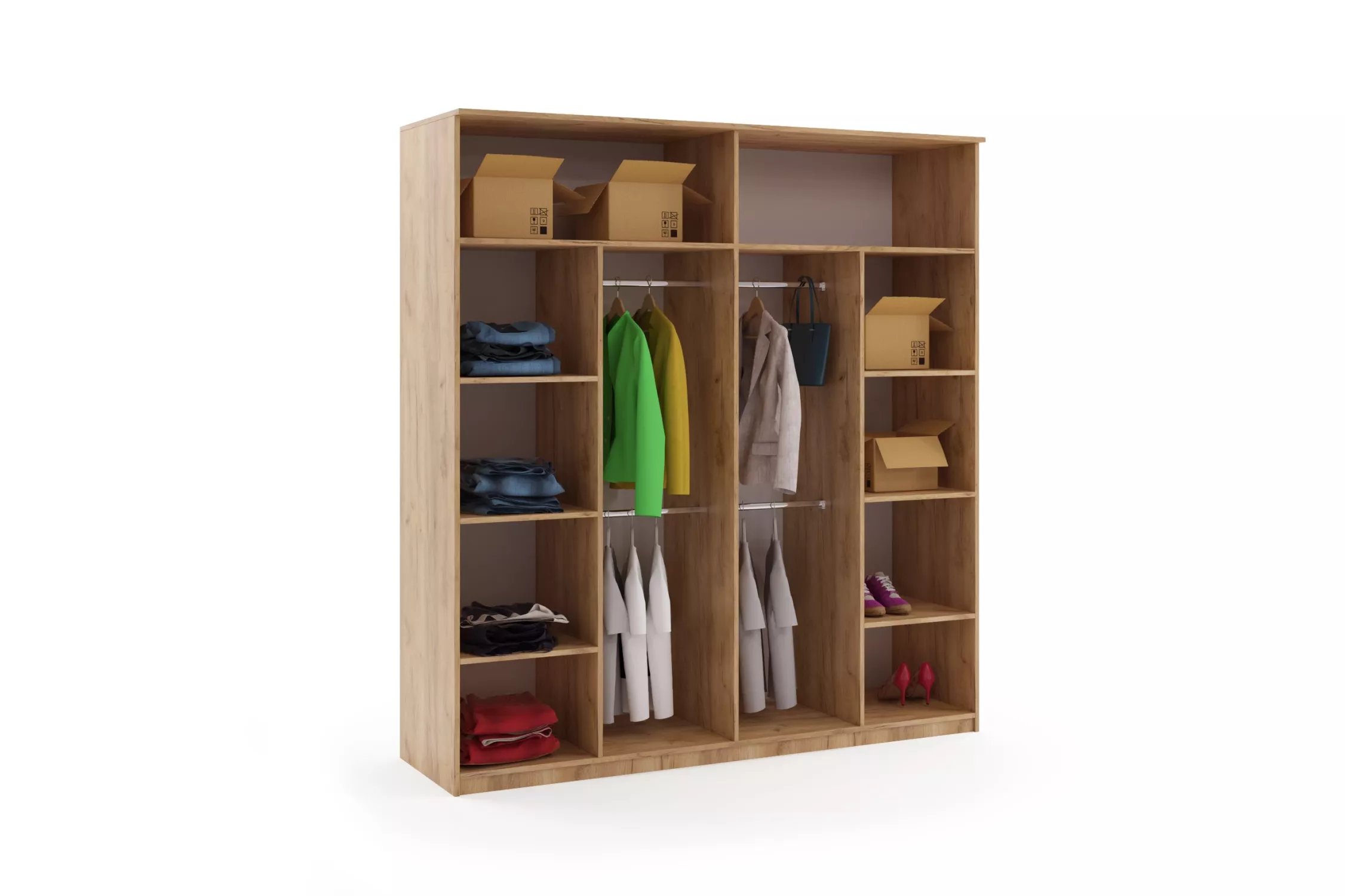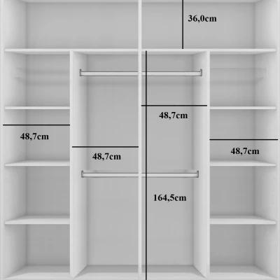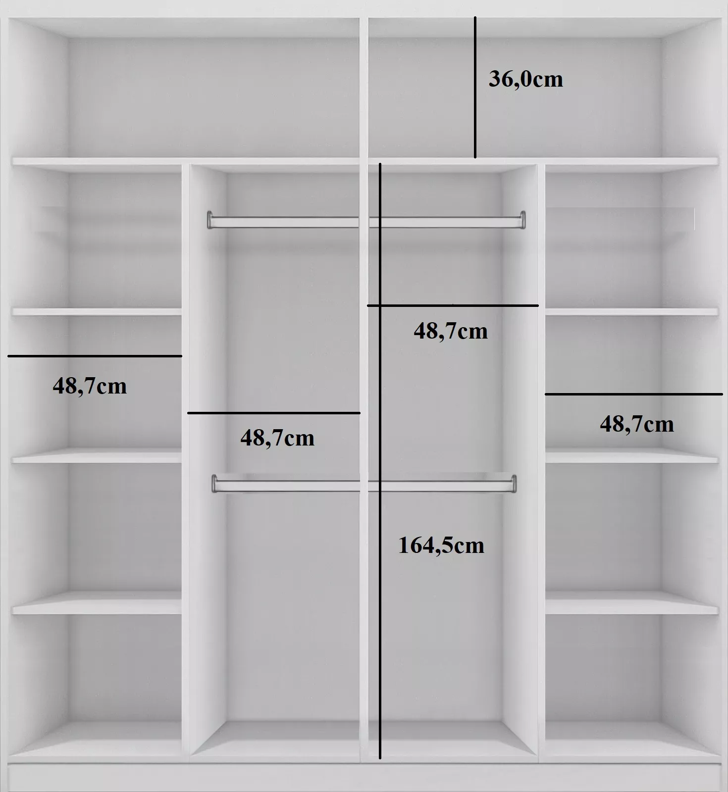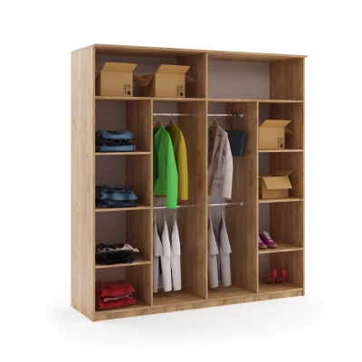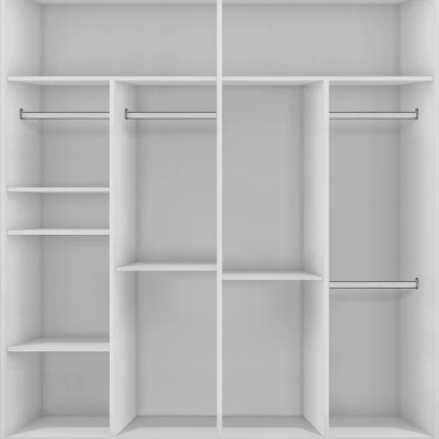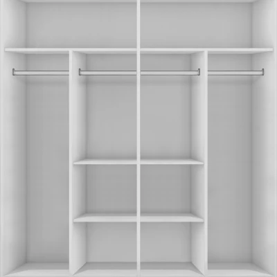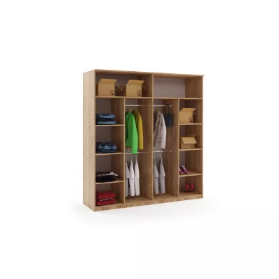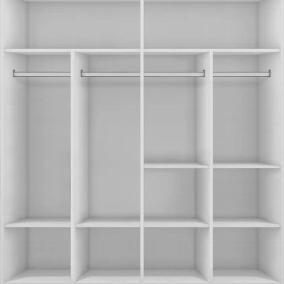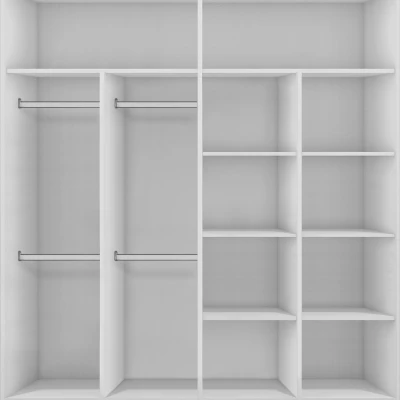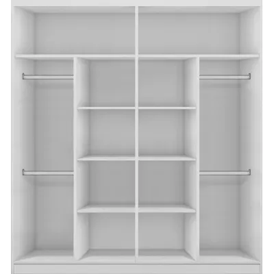Šatní skříň NEVENA s posuvnými dveřmi je funkční a zároveň vzhledově atraktivní skříň. Vnitřek skříně tvoří prostorné police a tyče na ramínka, které lze různě umístit.
