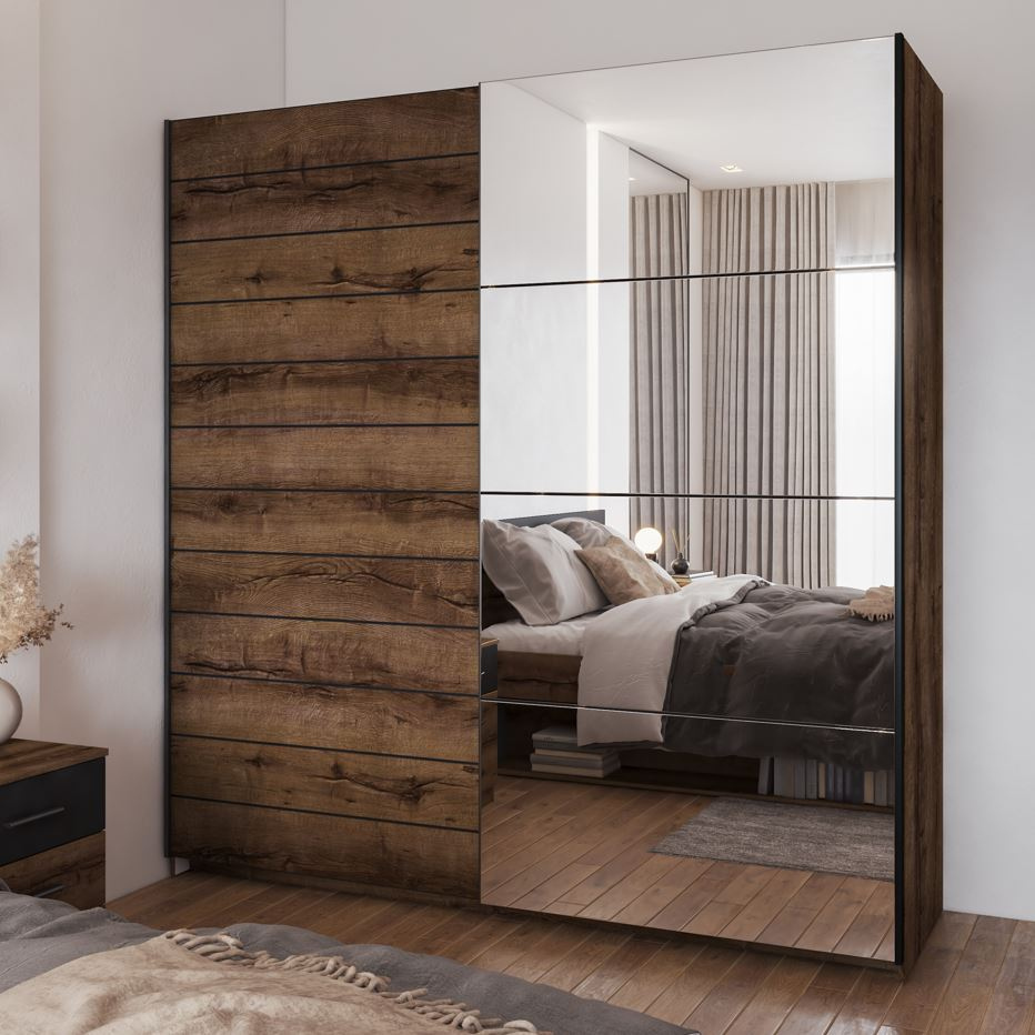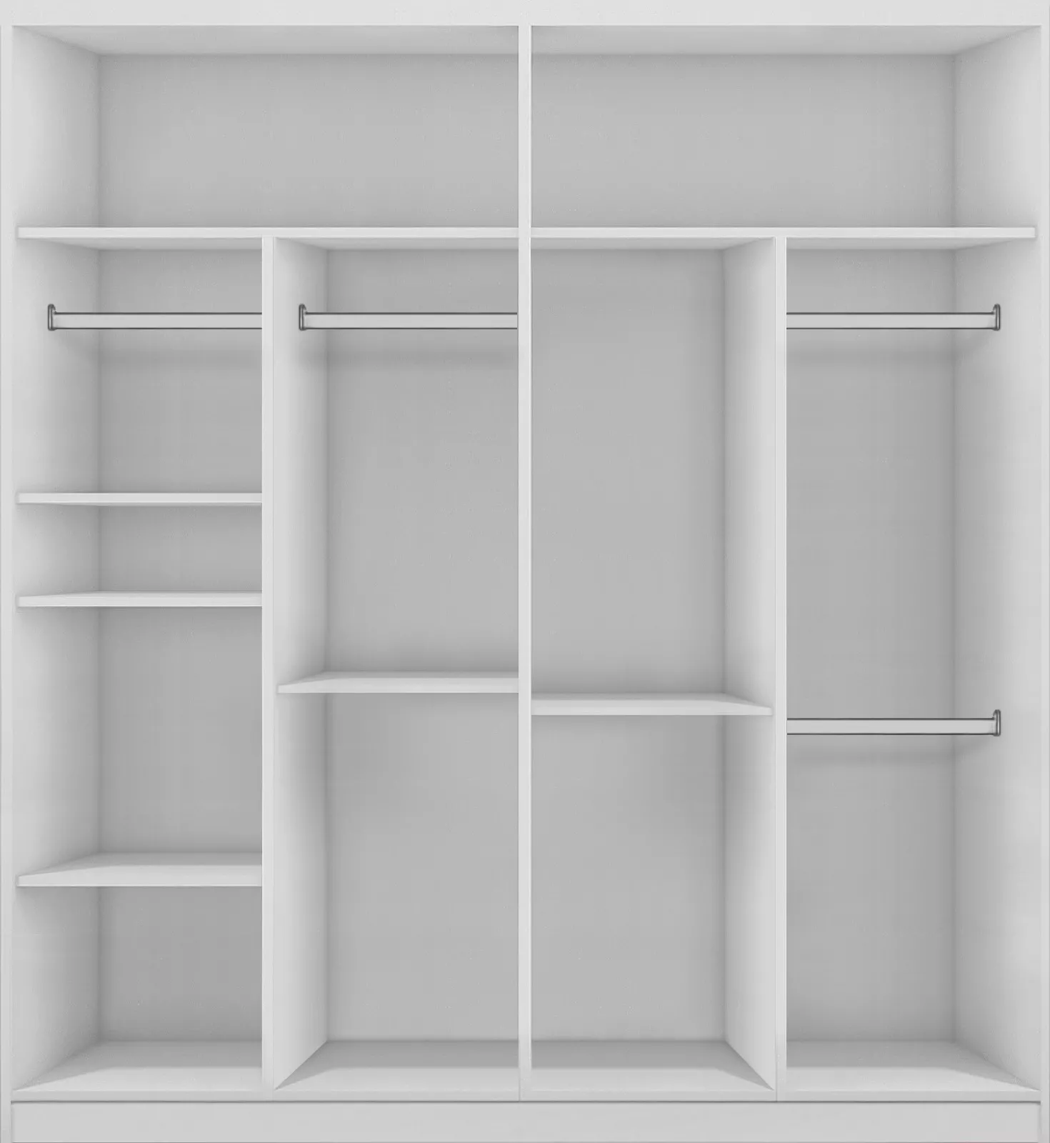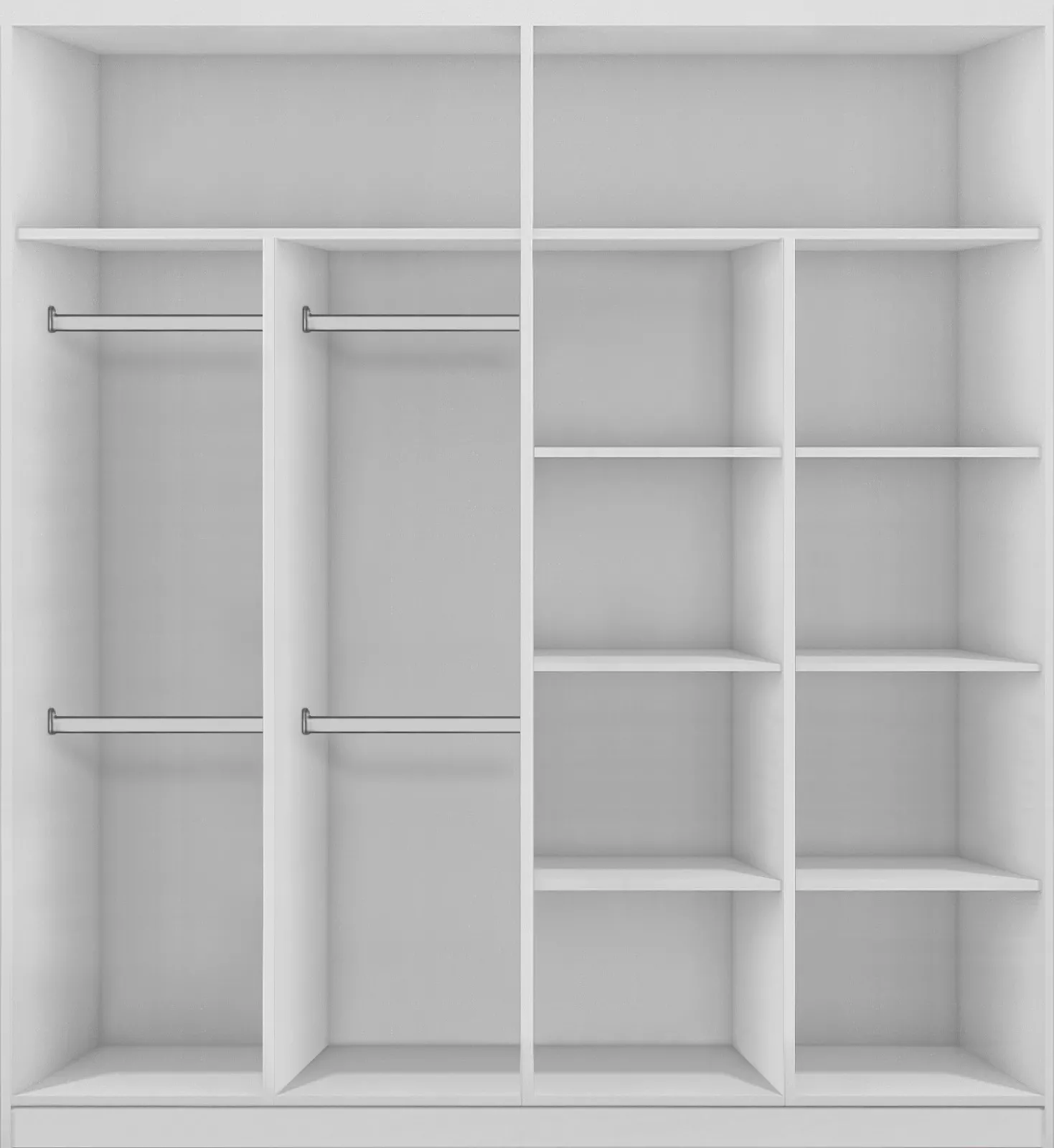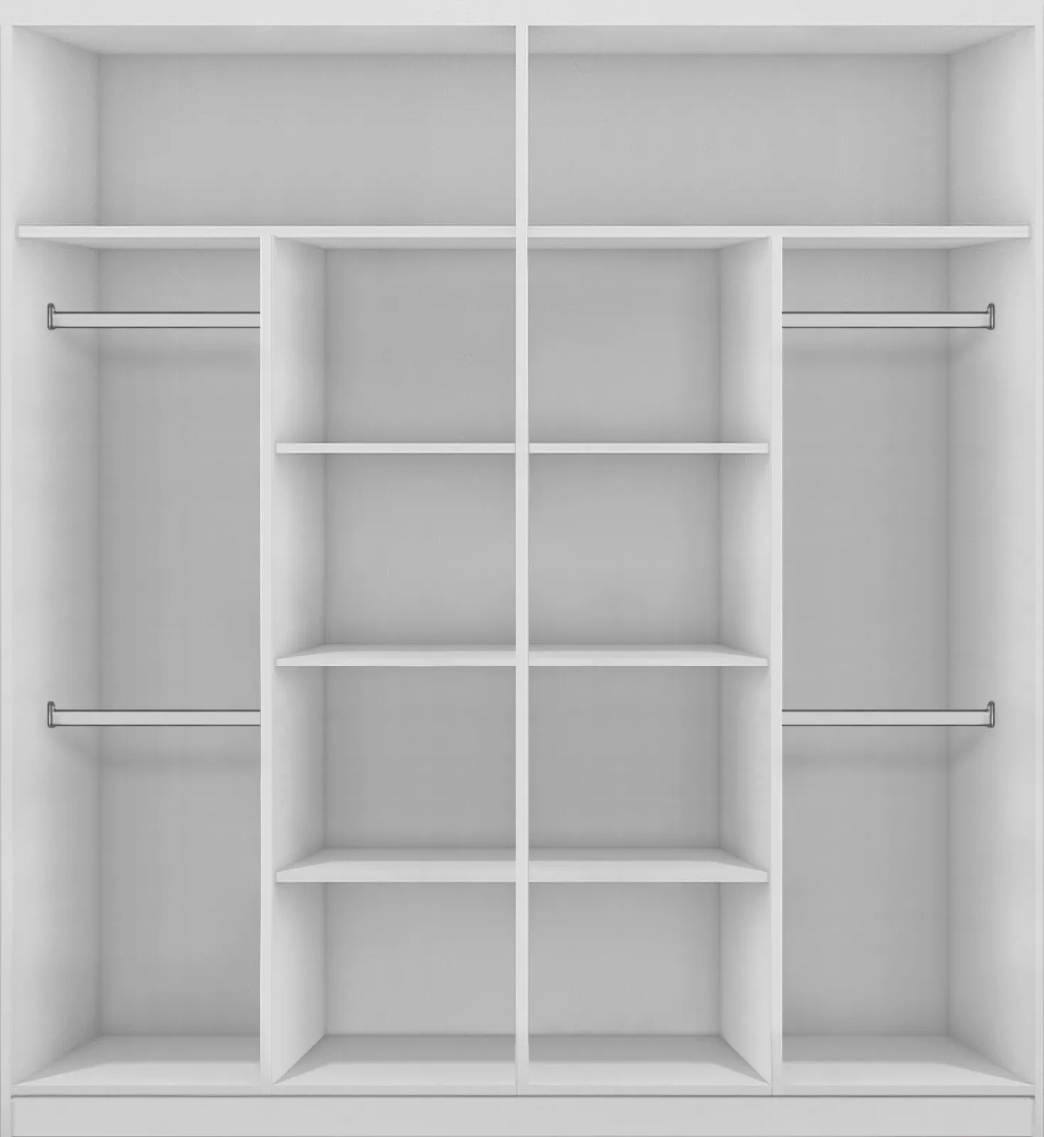 Šatní skříň NEVENA s posuvnými dveřmi je funkční a zároveň vzhledově atraktivní skříň. Vnitřek skříně tvoří prostorné police a tyče na ramínka, které lze různě umístit.