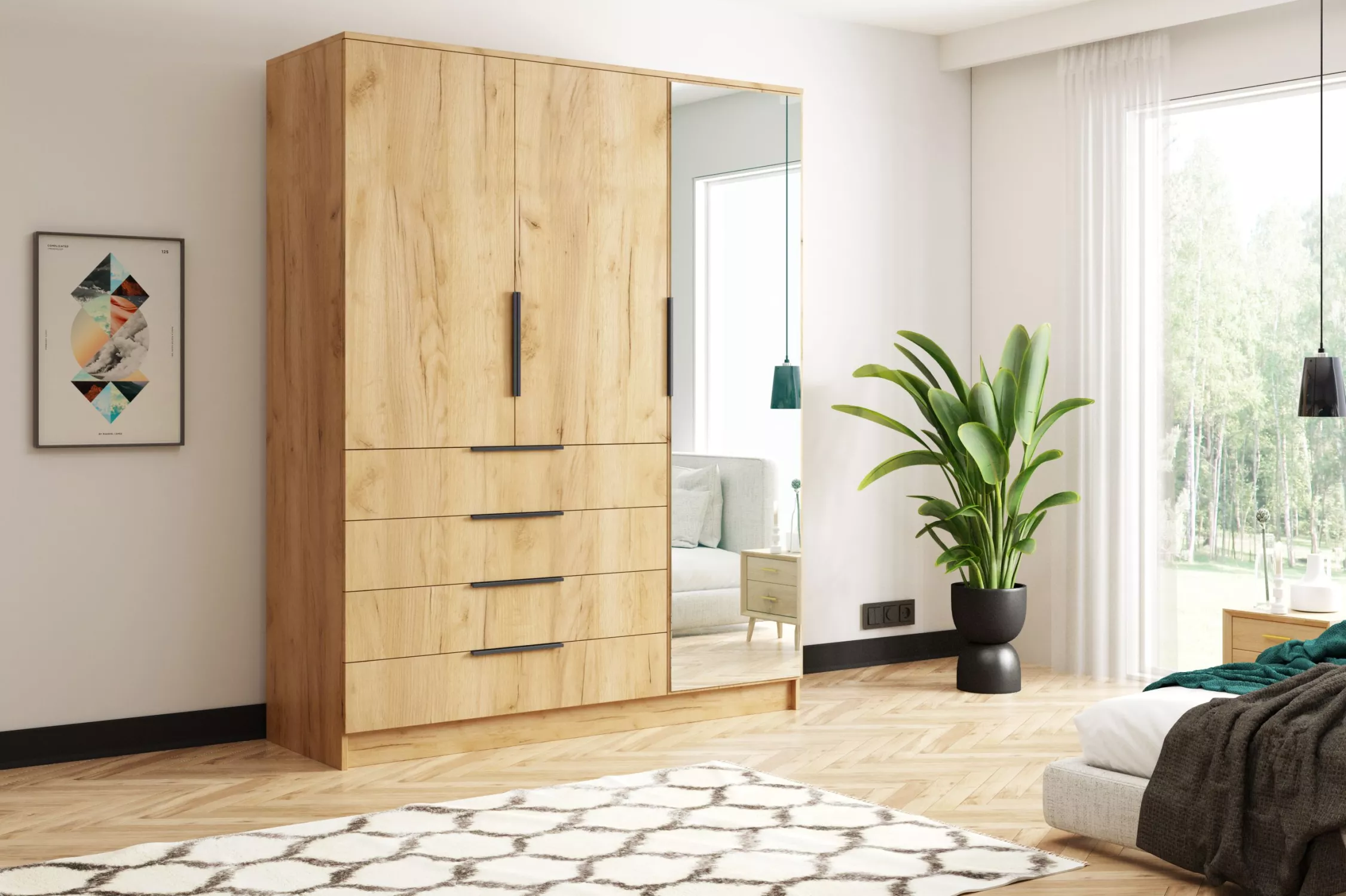 Třídveřová šatní skříň SIBYLA se hodí nejenom do ložnice nebo předsíně, ale i do dětského pokoje. Úložný prostor je vybaven 3 policemi, šatní tyčí a 4 šuplíky. Praktickou výhodou této skříně je velké zrcadlo.