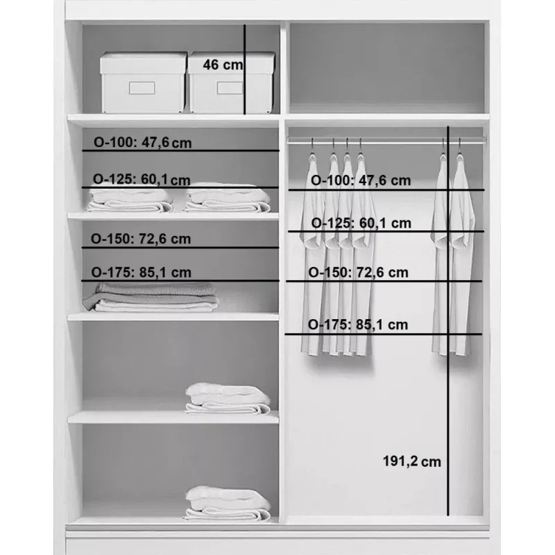 Šatní skříň JESICCA se zrcadlem se vyznačuje nejen moderním designem, ale také stabilní strukturou. Vnitřek skříně tvoří police a tyč na ramínka. Dveře se otevírají pomocí kovových lišt po stranách.