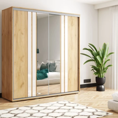 Šatní skříň 100/245 PAISLEY se zrcadly - dub craft zlatý
