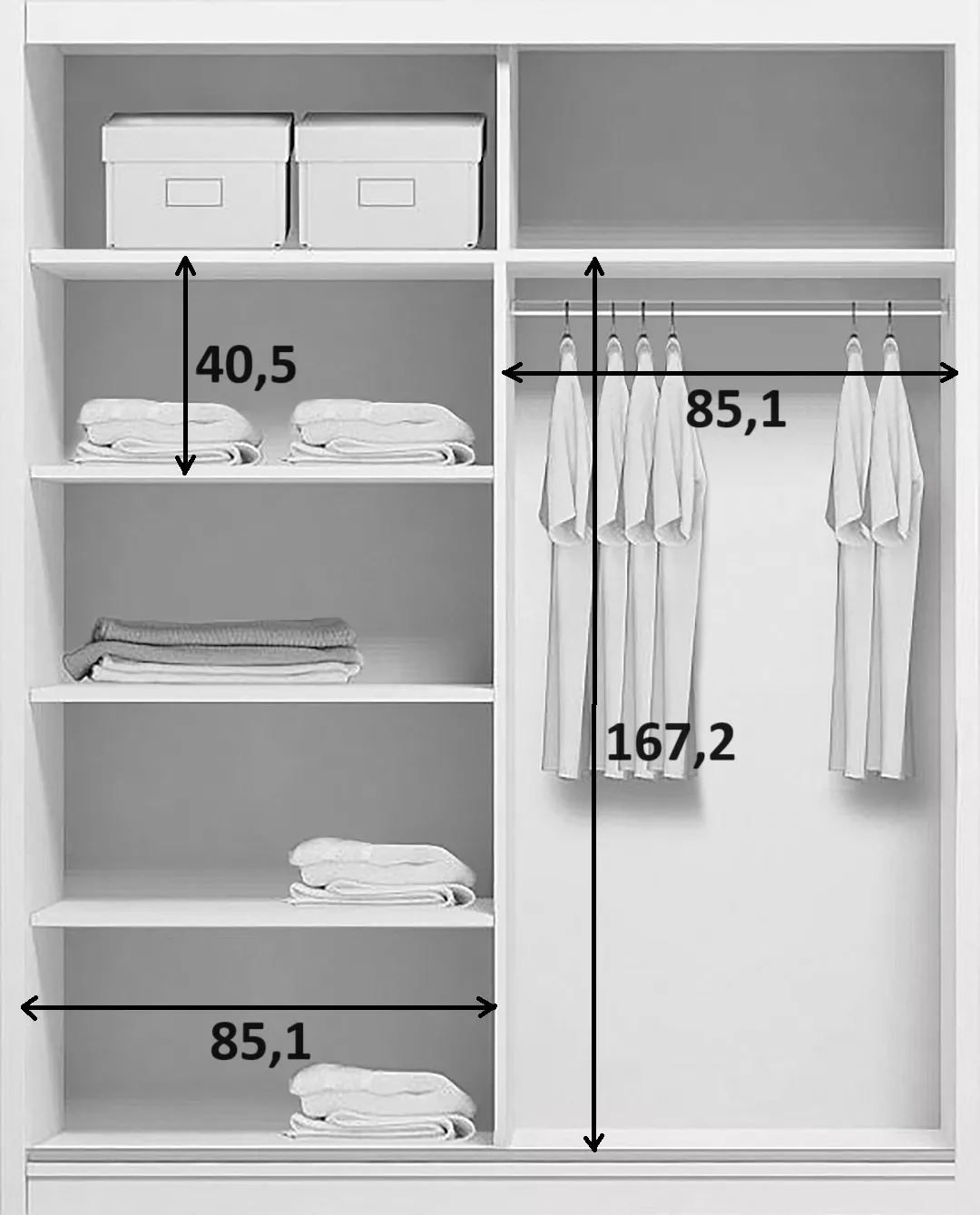 Šatní skříň PAISLEY se zrcadly se vyznačuje nejen moderním designem, ale také stabilní strukturou. Praktické posuvné dveře oceníte v boji s nedostatkem místa. Uvnitř skříně jsou police a šatní tyč.