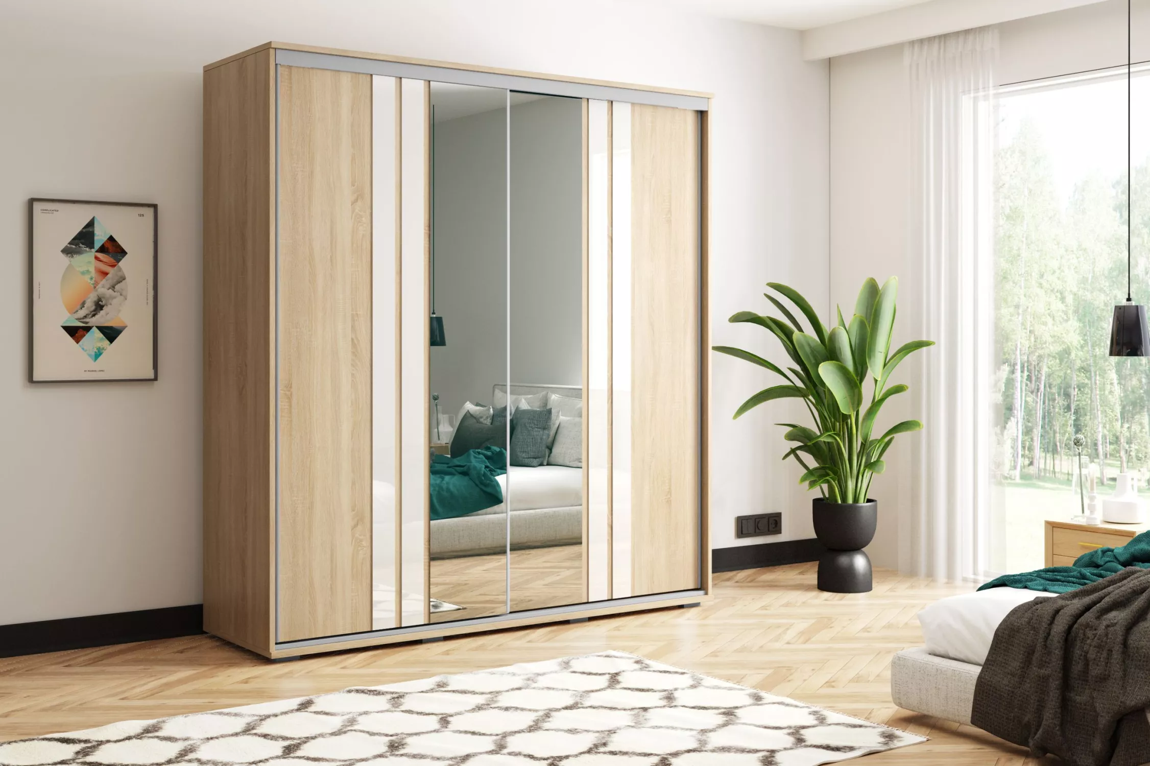 Šatní skříň 200/215 PAISLEY se zrcadly - dub sonoma