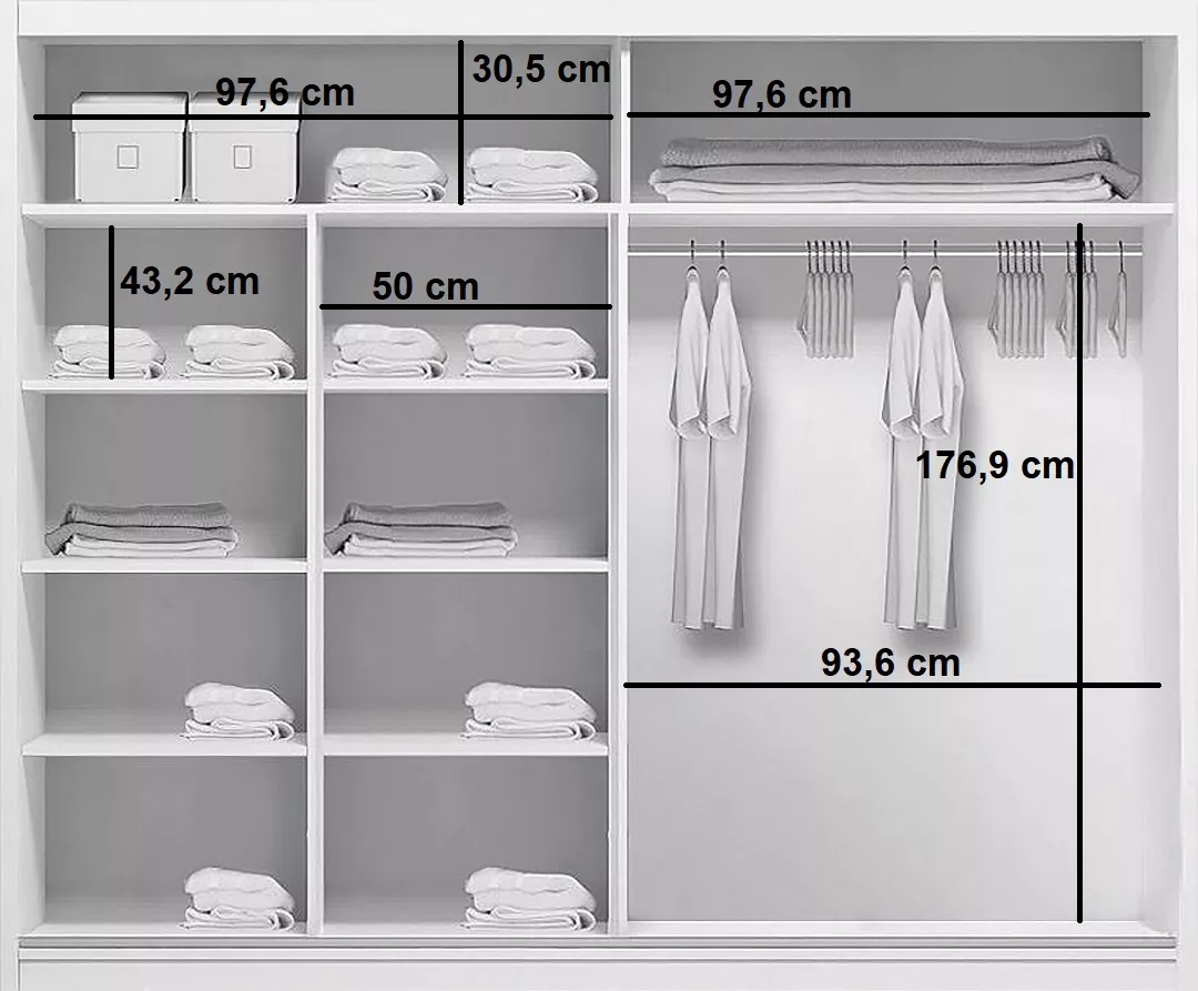 Šuplíky vyobrazené na fotografii najdete k dokoupení v sekci Doporučujeme přikoupit. Pořídíte je v setu po 4 kusech včetně vodících lišt (pojezdů). Do skříně je možné nainstalovat 1 set šuplíků.
