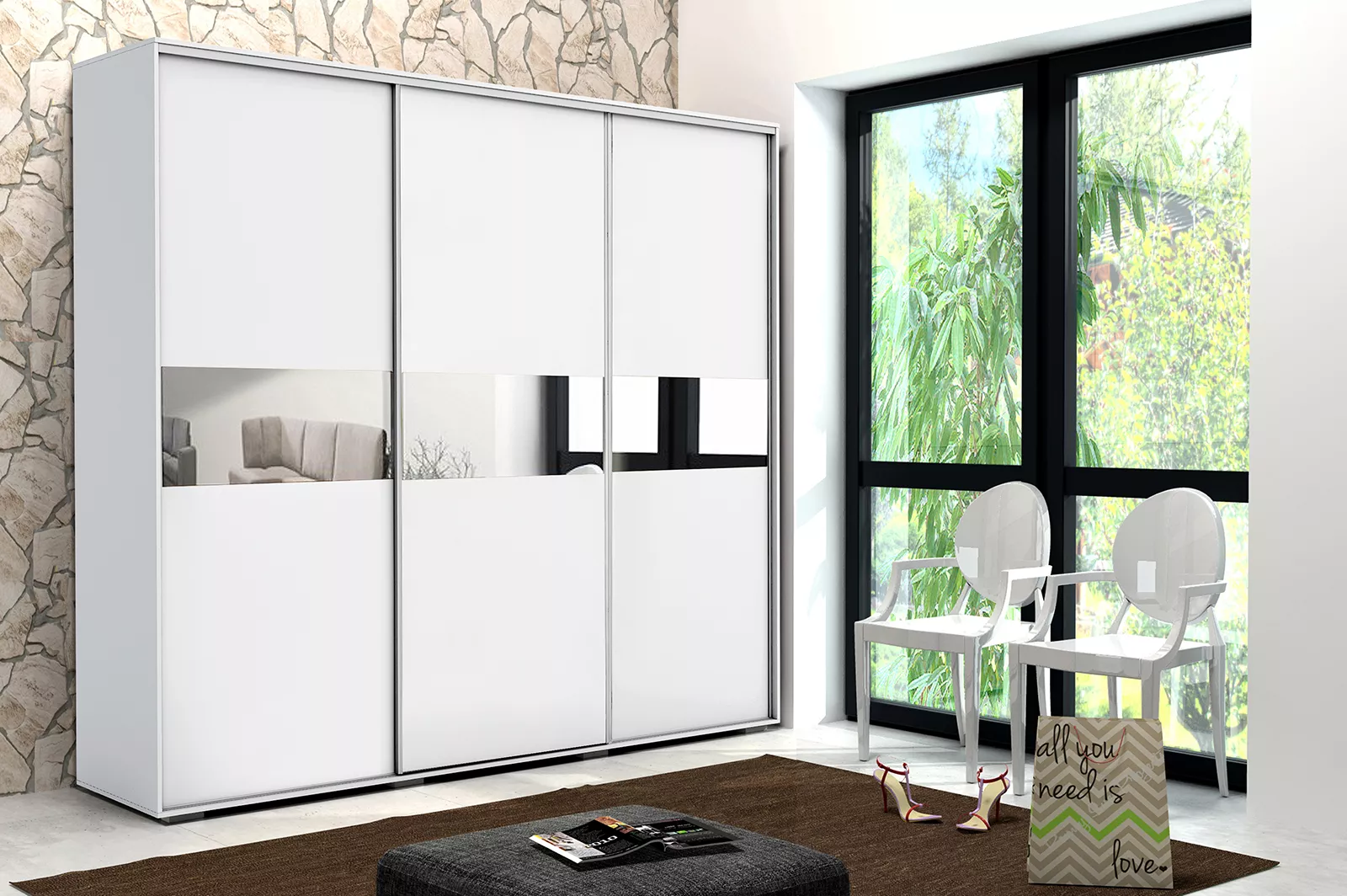 Šatní skříň 250/215 LUIS se zrcadlem - bílá