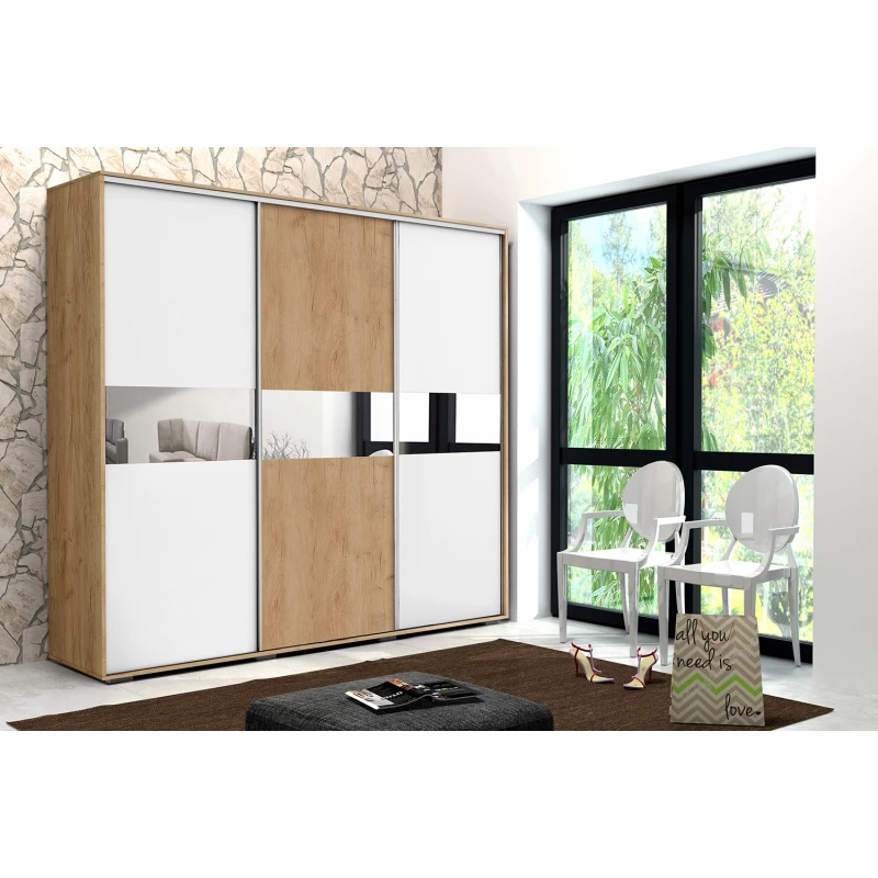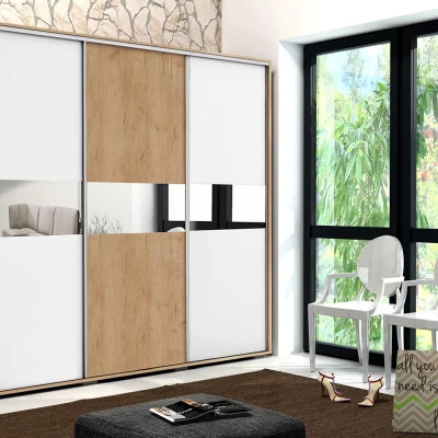 Šatní skříň 278/215 LUIS se zrcadlem - dub craft zlatý / bílá / dub craft zlatý