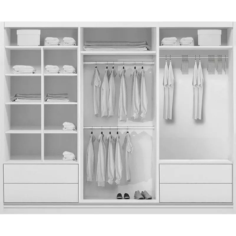 Šatní skříň MANUEL se hodí do všech typů interiérů. Za třemi posuvnými dveřmi se ukrývá hodně úložného prostoru, který hravě pojme všechno oblečení. Ve středové části se nachází lakované sklo, které dodává skříni luxusnější vzhled. Skříň nemá žádné výrazné úchytky, dveře se otevírají pomocí kovových lišt po stranách.